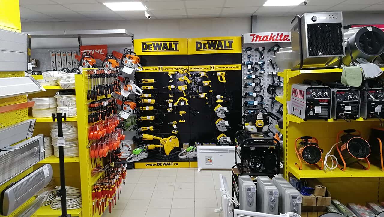 - Хороший ассортимент (электротехника, инструменты)