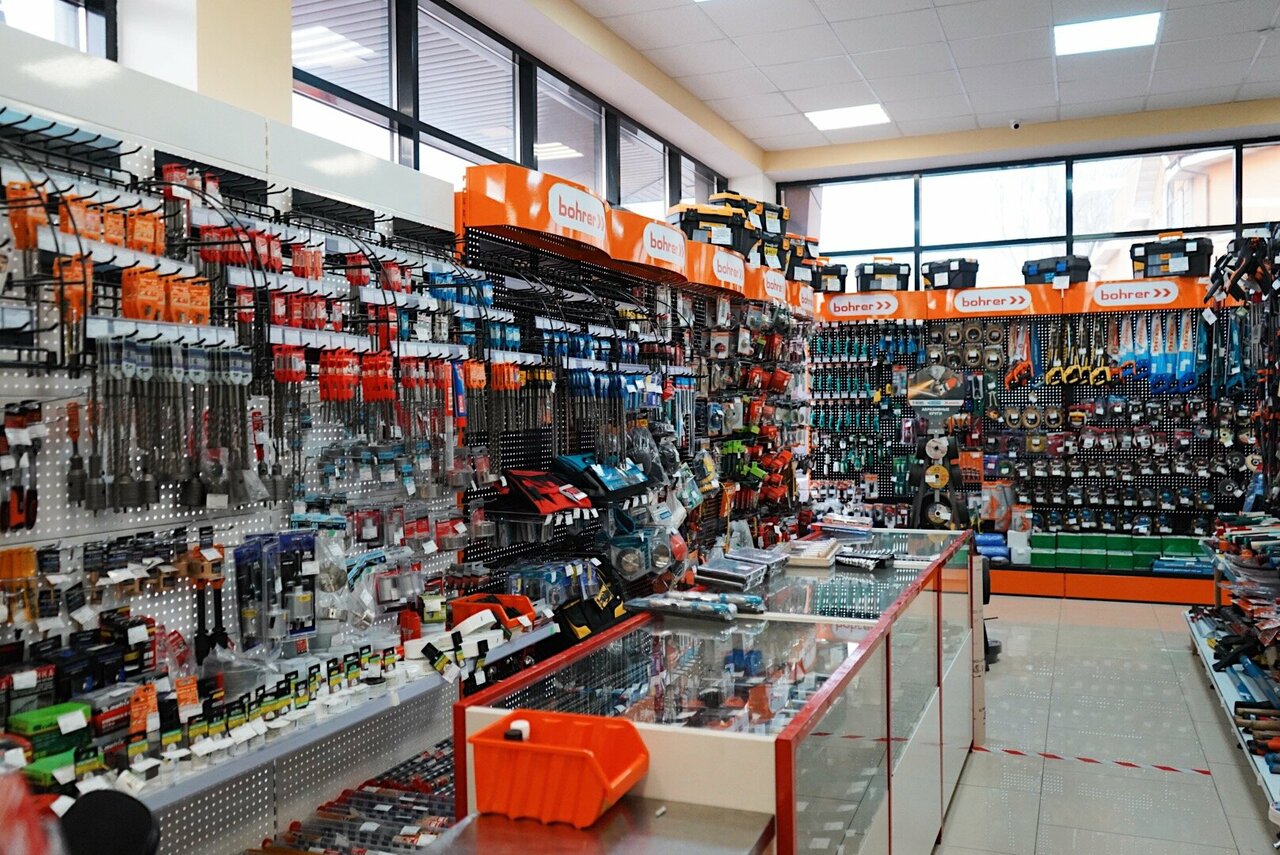 - Хороший ассортимент товаров (крепеж, инструменты, сантехника, краски, электрика и др.)