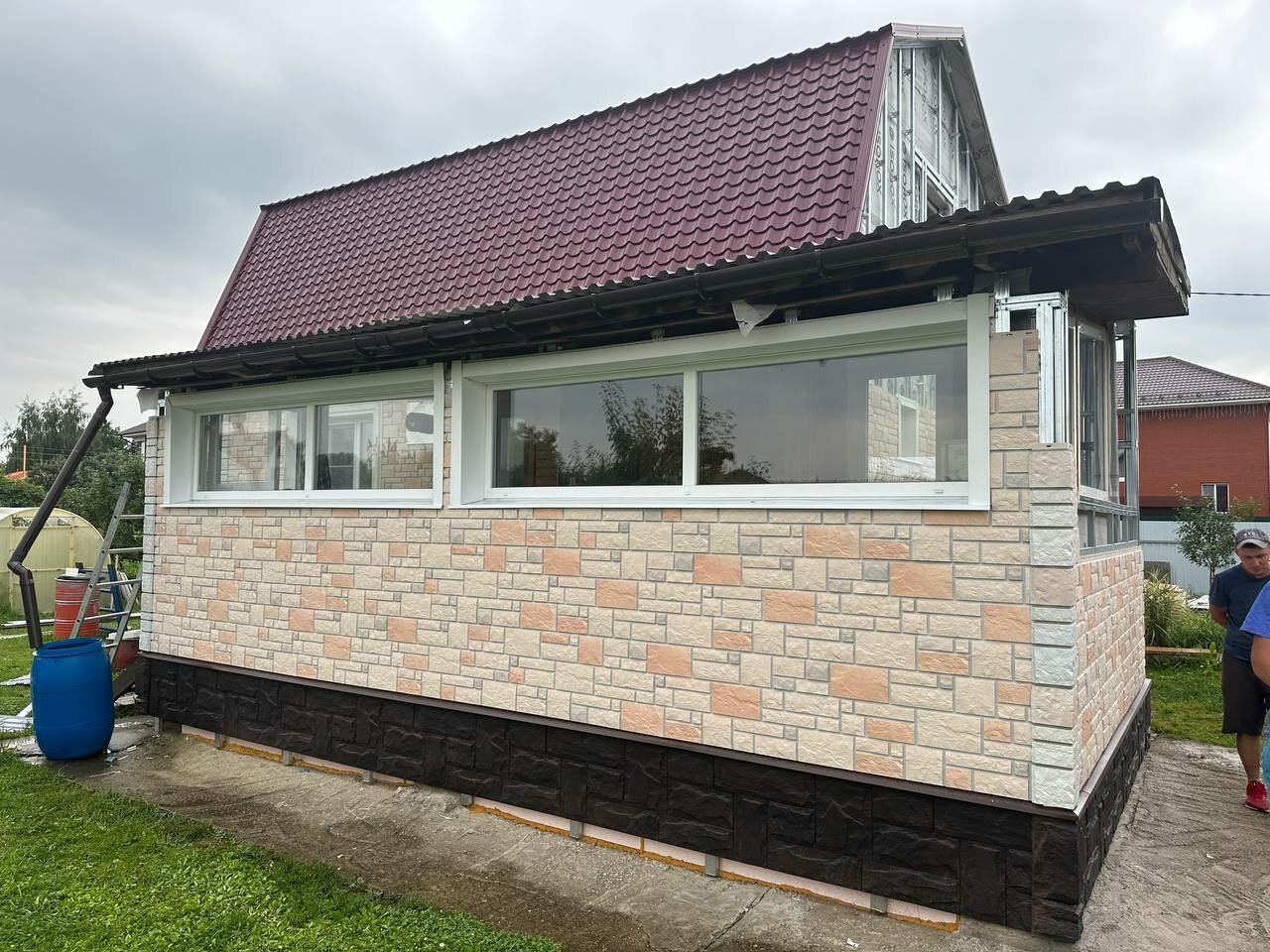 Решили облагородить фасад дачного дома, купили штукатурку и декоративный камень. Благодарю консультантов за советы по выбору материалов.