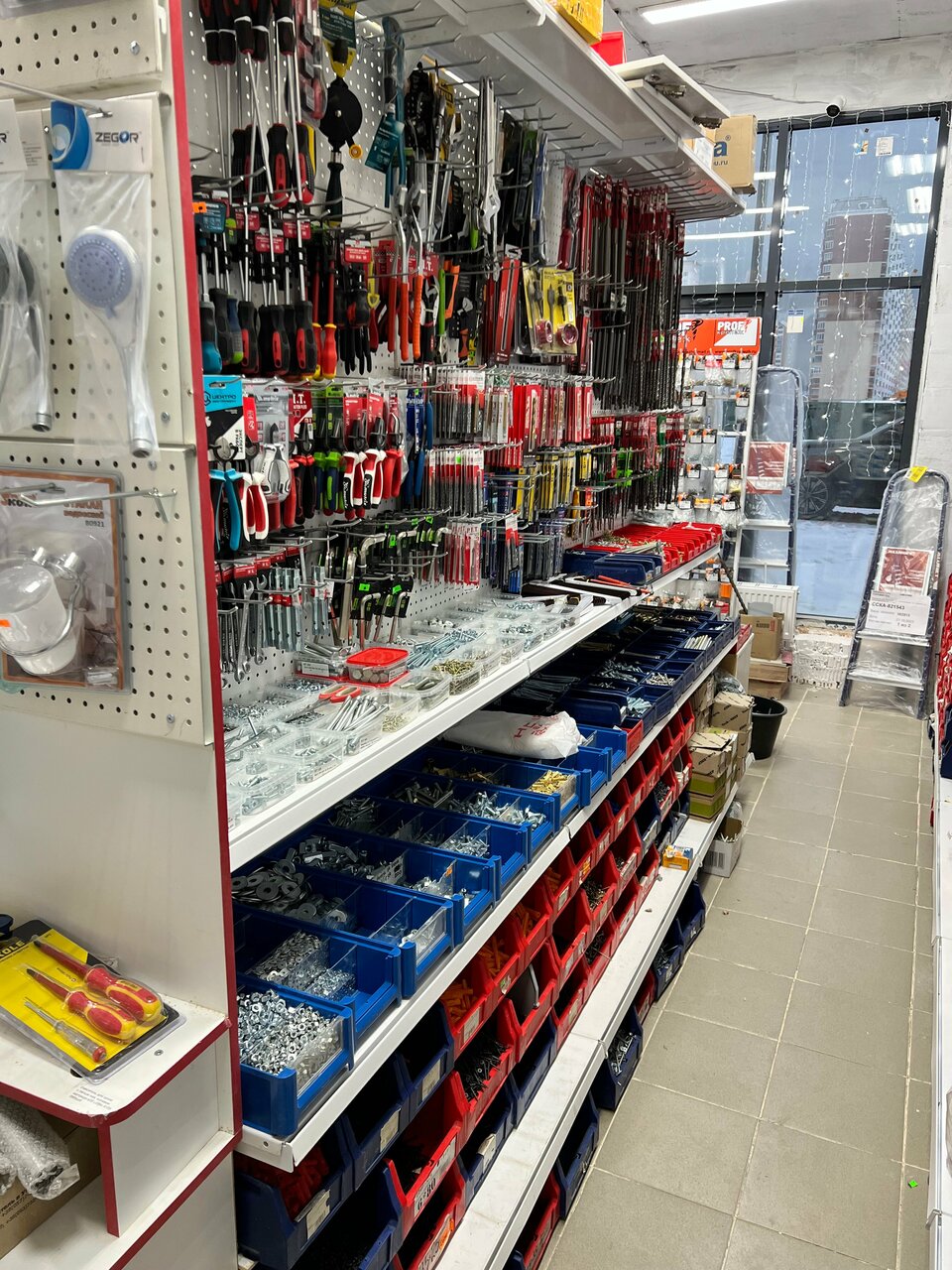 Очень маленький и тесный, зато есть практически всё, без преувеличения)) Спасал нас бесчисленное количество раз во время ремонта, да и не только. Можно оплатить картой. Хотелось бы побольше выбор ламп, но по крайней мере хоть какие-то подобрать можно всегда.