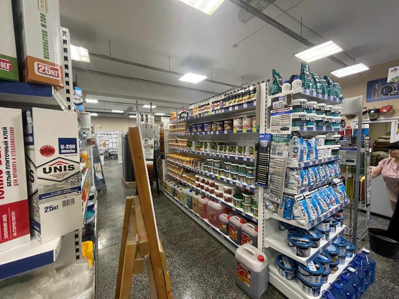 Достаточно большой ассортимент , если делаешь ремонт в этом микрорайоне — очень удобно. Директор хорошая женщина, всегда идёт навстречу если остается материал в товарном виде и осуществляет возврат без проблем. Некоторые продавцы имеют слишком замученный вид и невежливы.