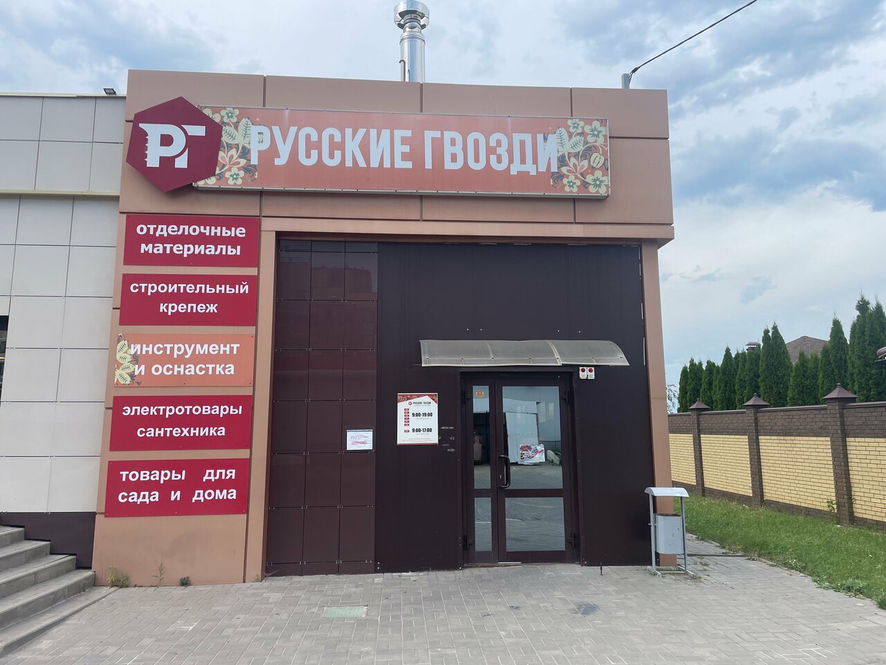 «Русские гвозди» — строительный магазин в Дубовом (Заповедная ул., 28), предлагающий материалы, инструменты и товары для ремонта и отделки. Режим работы: пн-сб 09:00–19:00, вс 09:00–17:00. Контакты: +7 (4722) 20-51-10, сайт: (https://www.rusgvozdi.ru/).