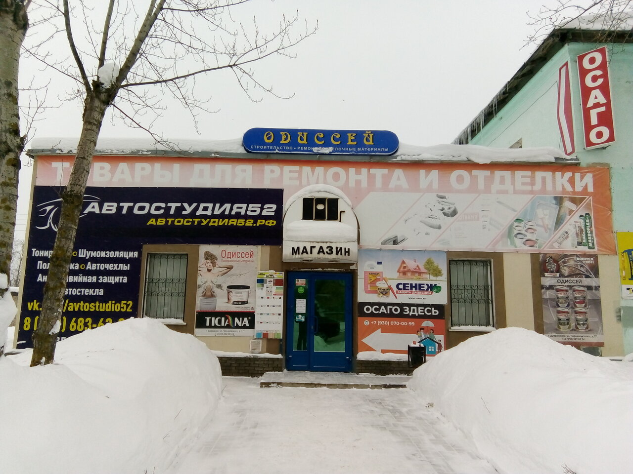 Одиссей — строительный магазин в Дзержинске, предлагающий широкий ассортимент материалов, инструментов и товаров для строительства, ремонта и отделки. Расположен по адресу: ул. Черняховского, 17. Режим работы: пн-пт 09:00–18:00, сб 10:00–16:00. Контакты: +7 (910) 392-82-24, +7 (951) 905-60-05, +7 (8313) 25-02-07.