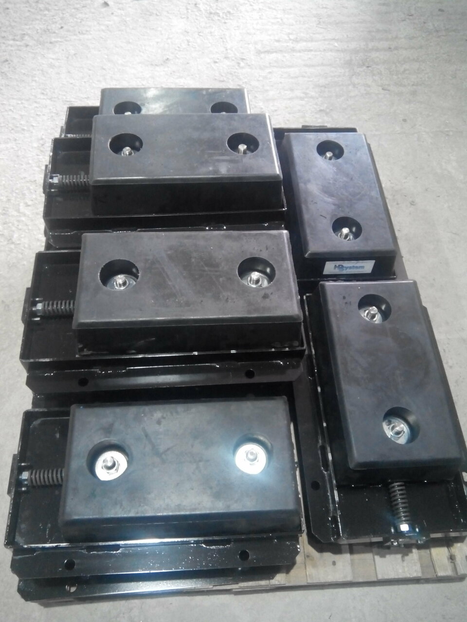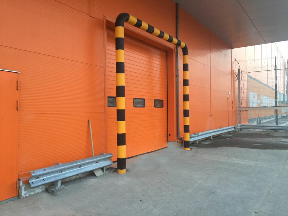 Упорные подвижные бампера (буферные подвижные амортизаторы для оборудования эстакад складских помещений, бамперы вертикальные сдвижные). Пластины изготовлены из высокопрочной стали.