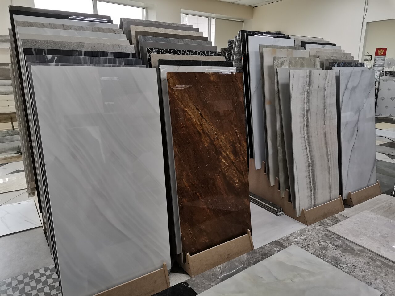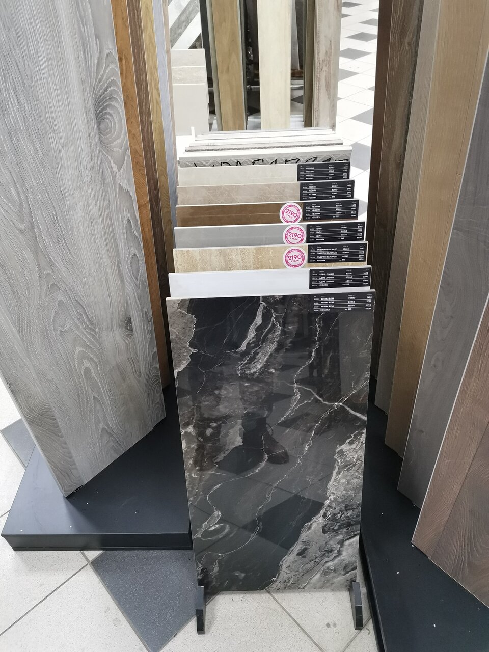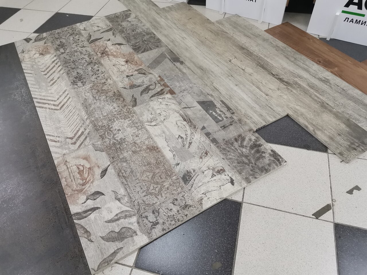 - Большой выбор плитки, ламината и керамогранита