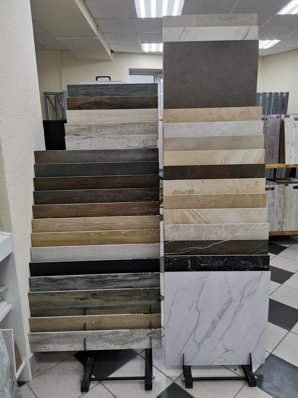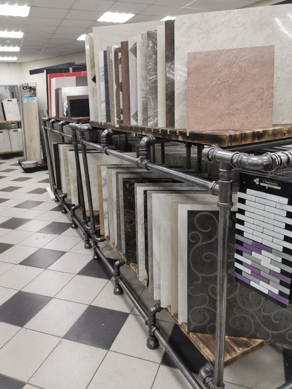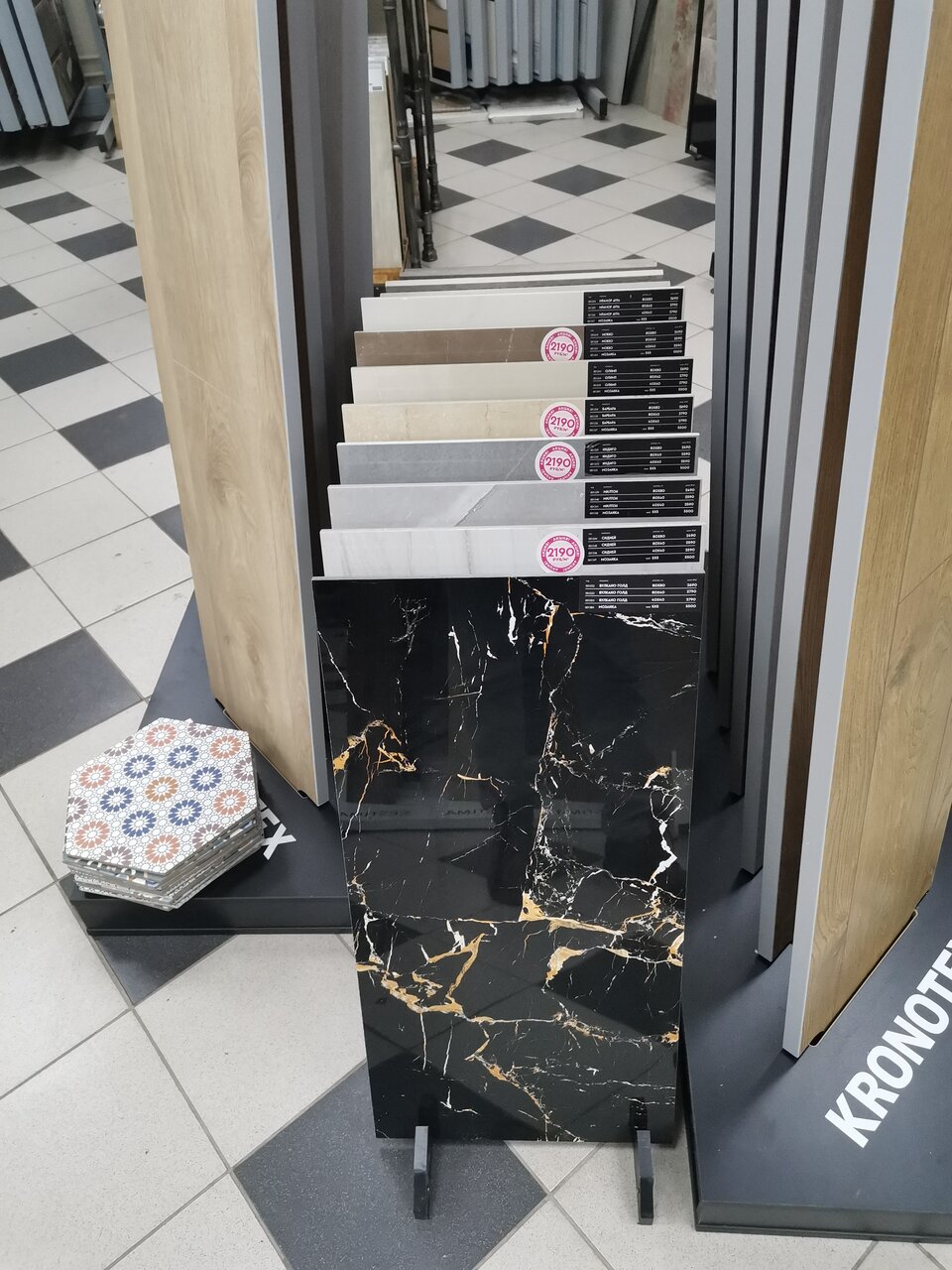 - Большой выбор плитки, ламината и керамогранита