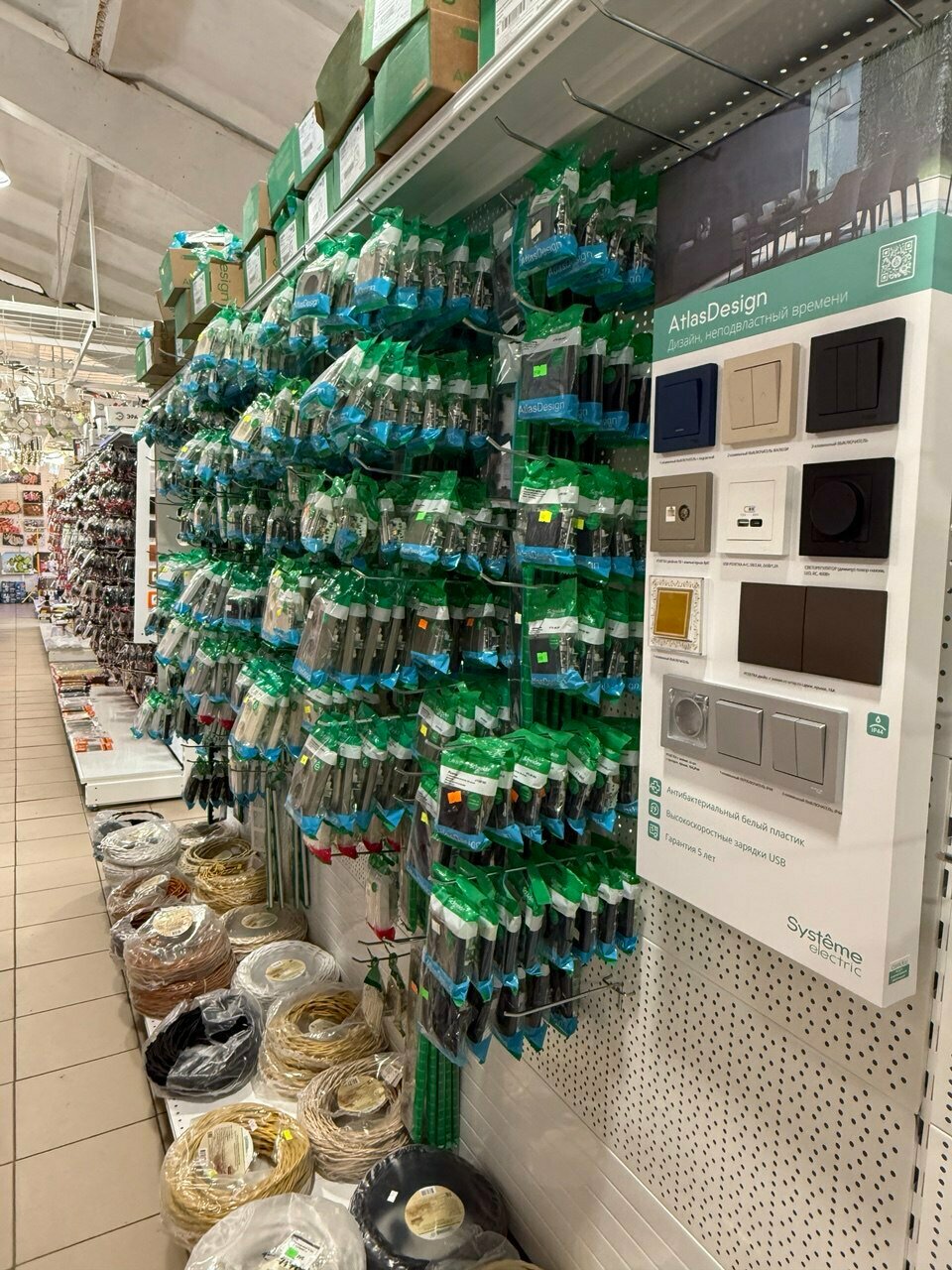 Есть все, от строительных и электротоваров, до сантехники и хозтоваров, всяческие мелочи. Имеется парковка. Всегда много покупателей.