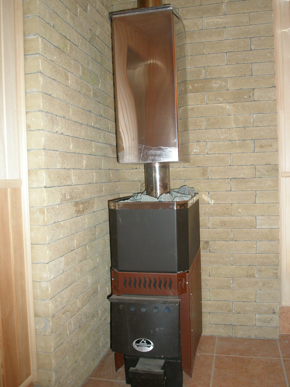 Это идеальный вариант для парных помещений среднего размера от 5 до 8 куб.м. Корпус модели из нержавеющей стали усилен оцинковкой внутри. Материал термостата печи не подвержен оплавлению, не выделяет запахов и токсичных веществ.