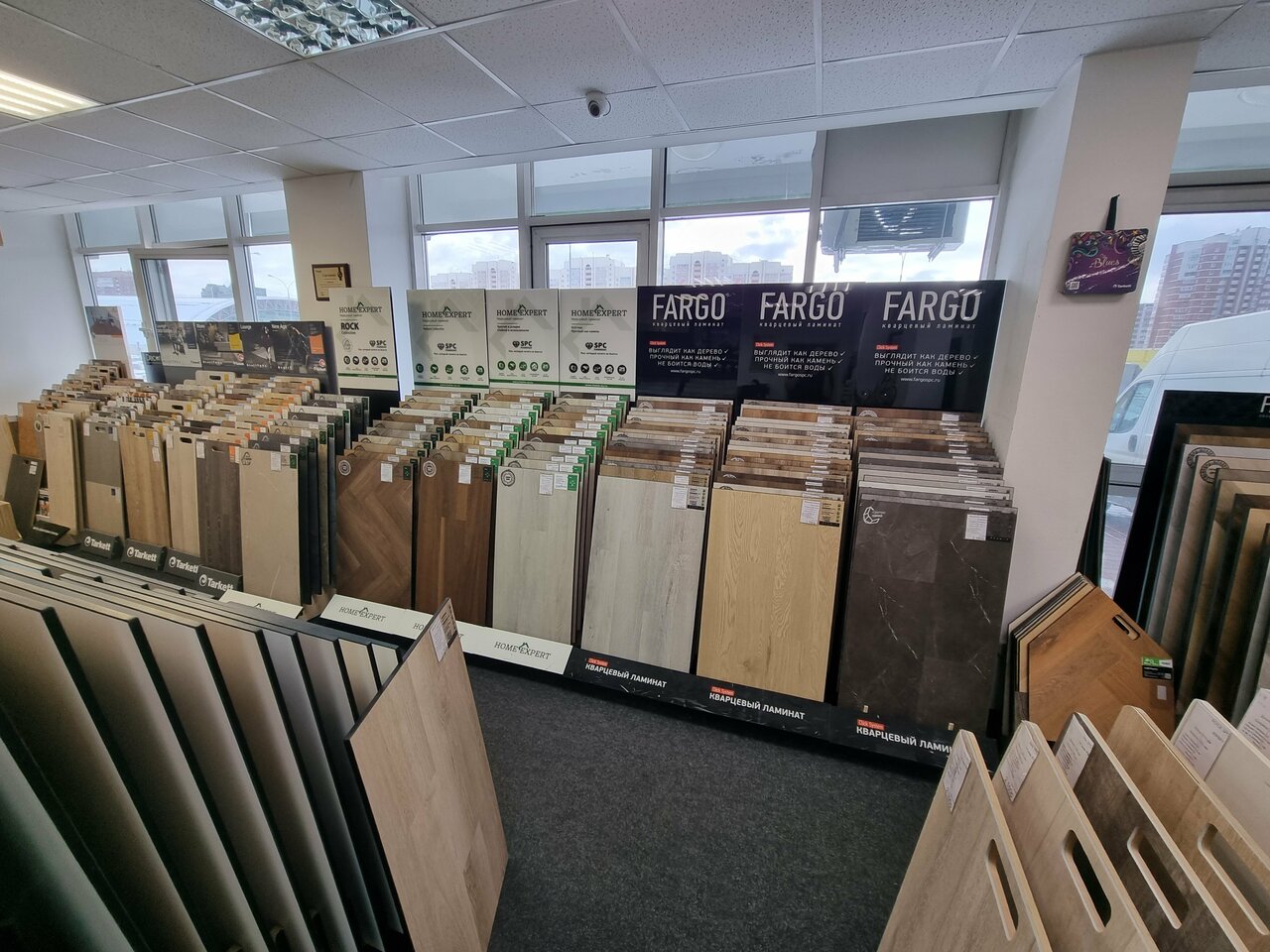- Широкий ассортимент напольных покрытий