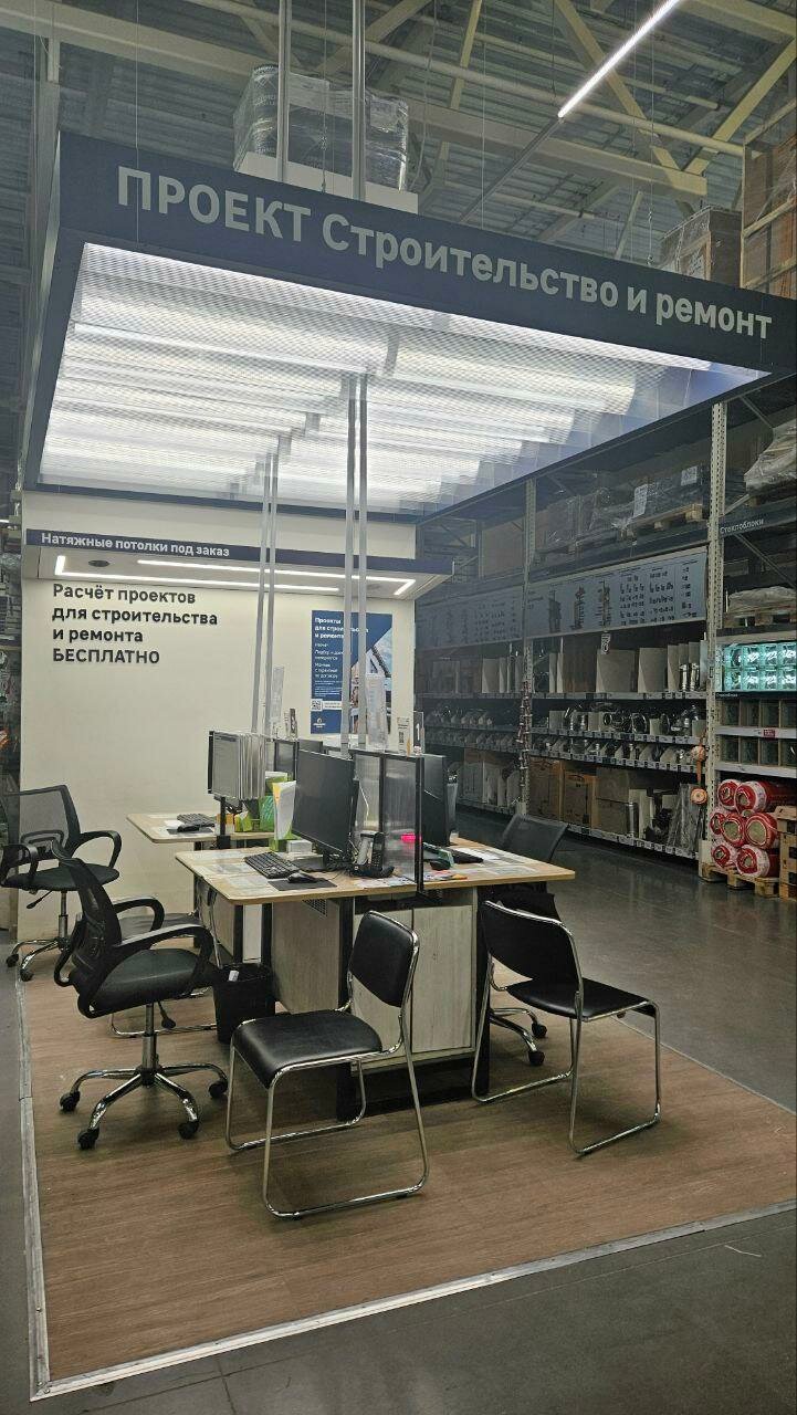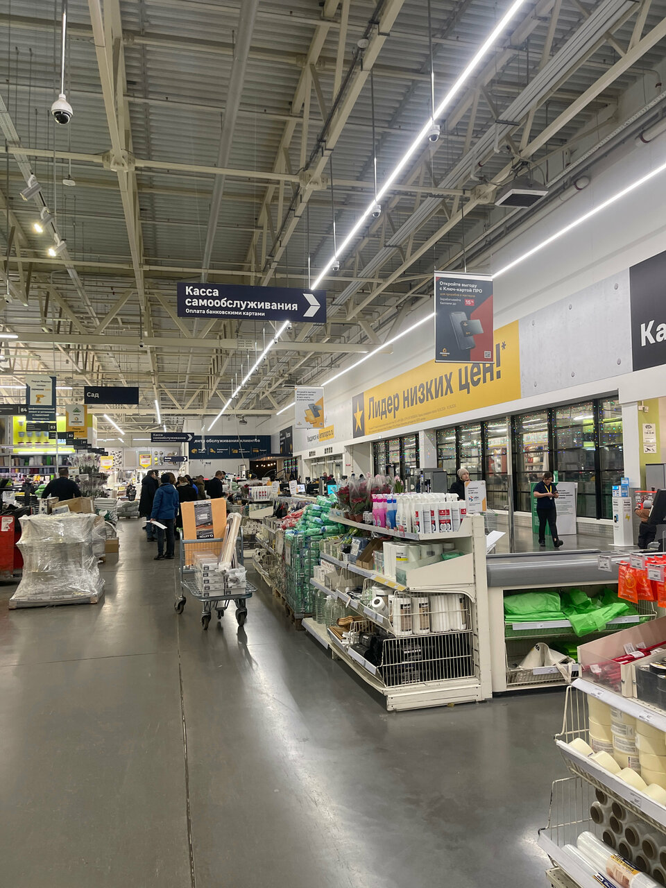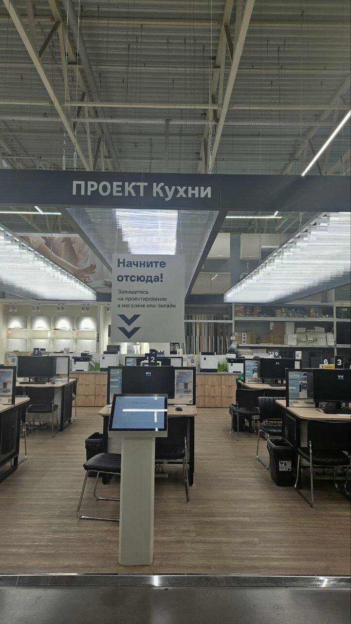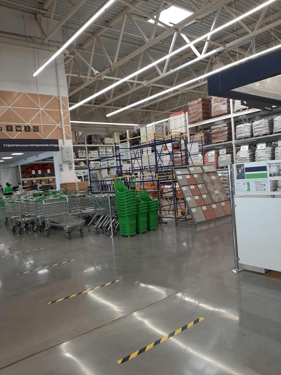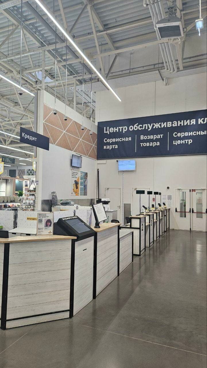 Большой строительный магазин. Есть внутри кафешка и кофематы, туалет. Хотелось бы добавить гардероб, потому как иногда приходится там бродить по 4 часа. Не всегда полагайтесь на выбор консультантов, предлагают неликвидный товар взамен хорошему (сухие смеси), что мы поняли только в процессе ремонта. Не приятно то, что в комнату нам отрезали линолеум не 306, 300, из-за этого теперь щель между стеной и линолеумом в 3.5 см, пока думаю чем закрыть