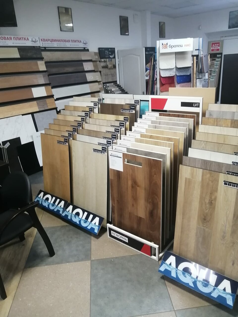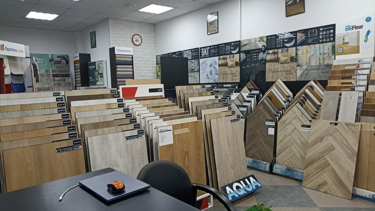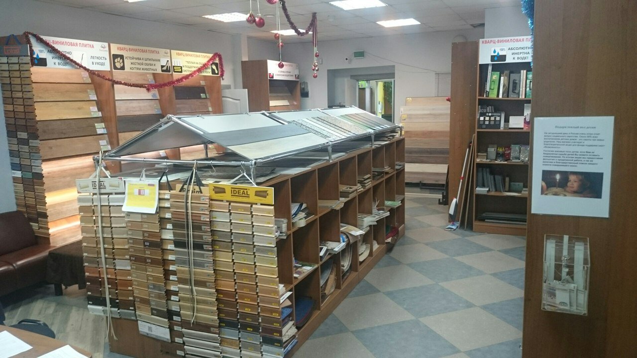 - Один из первых магазинов с кварцвиниловой плиткой в городе