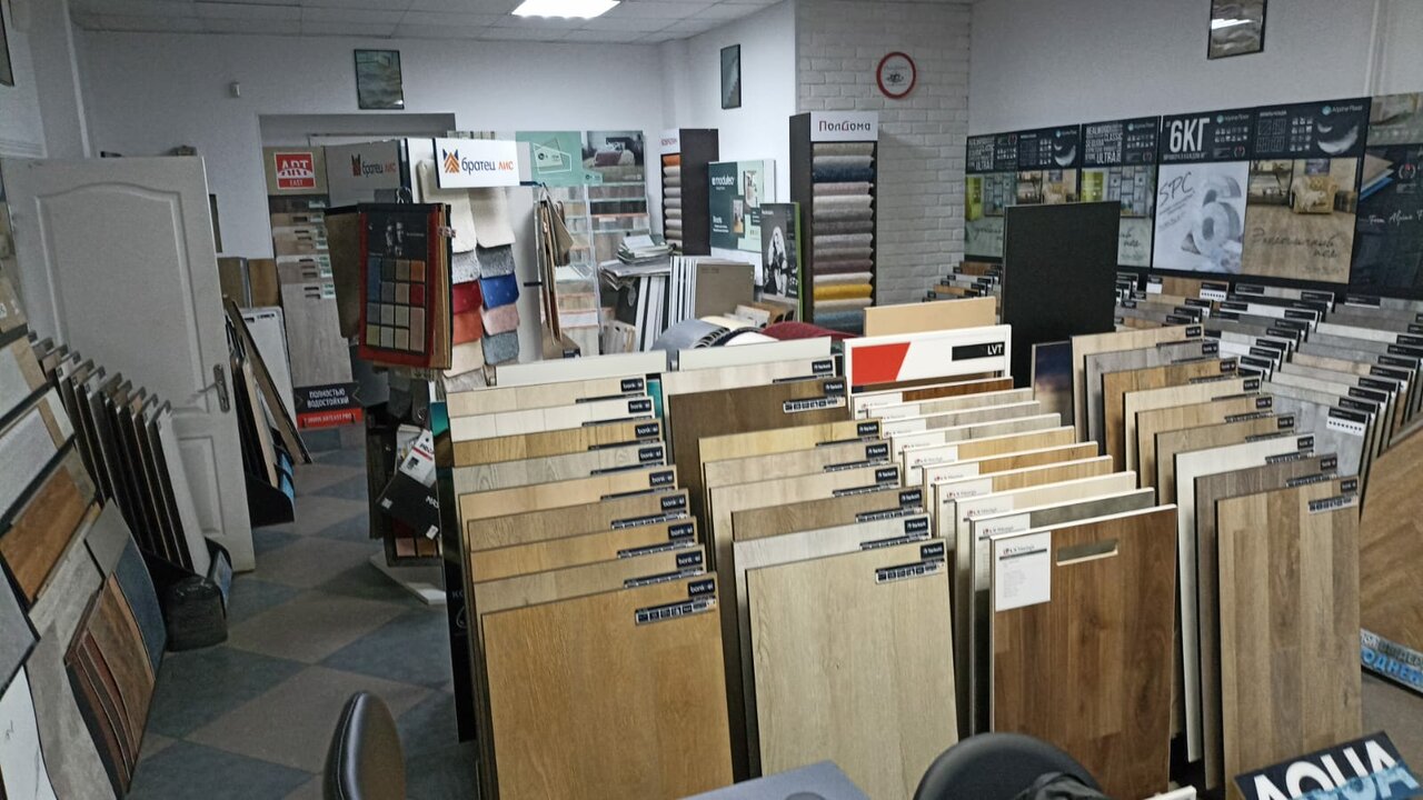 Отличный салон напольных покрытий. Большой ассортимент линолеума, ламинат, кварц виниловой плитки. Так-же можно заказать керамогранит. Классный персонал, подскажут, расскажут. Рекомендую!