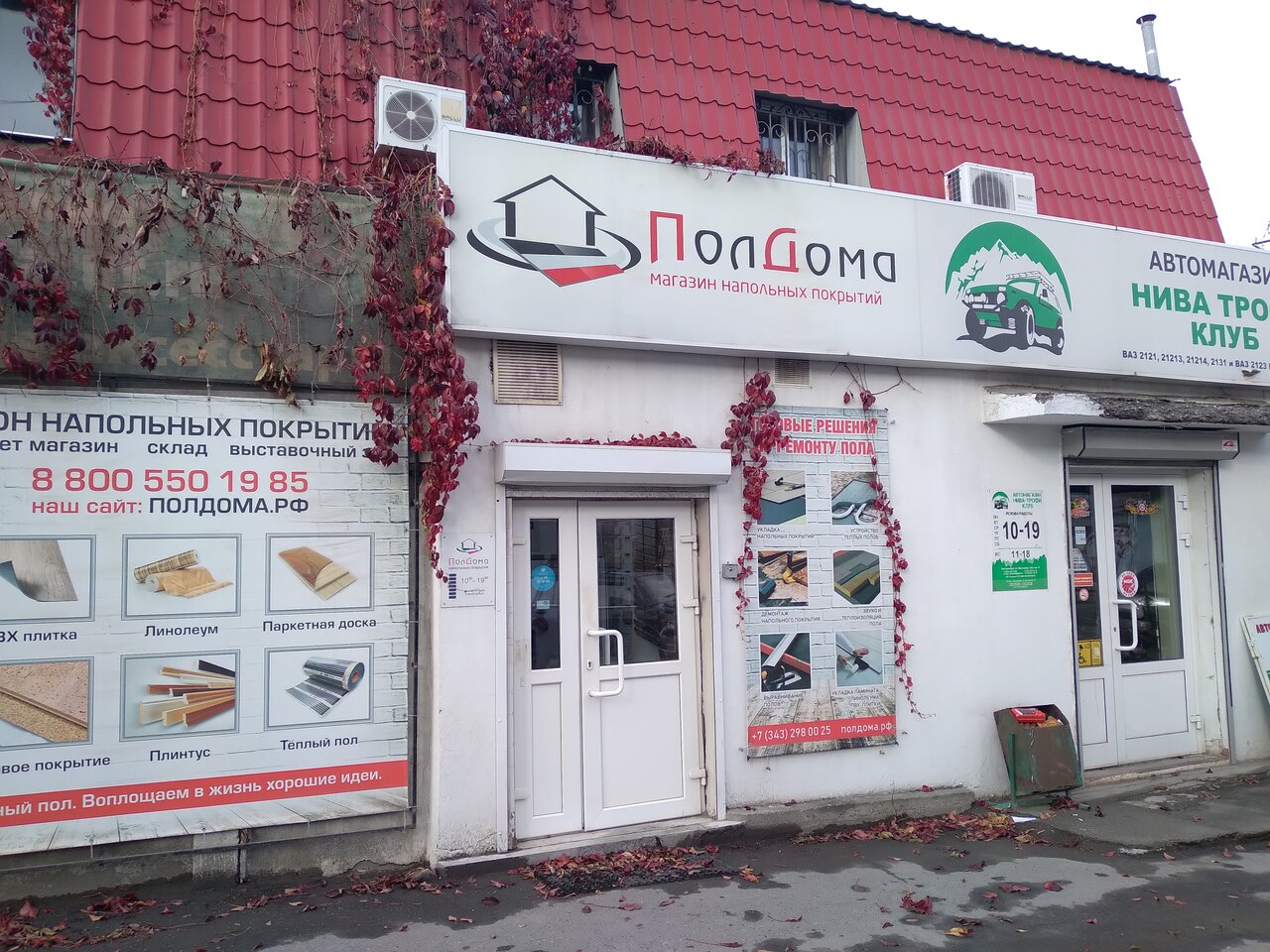 ПолДома — строительный магазин в Екатеринбурге, специализирующийся на напольных покрытиях и сопутствующих материалах. Ассортимент включает инженерную и массивную доску, ламинат, линолеум, кварц-винил, ковролин, искусственную траву, а также резиновые, бетонные и наливные полы.