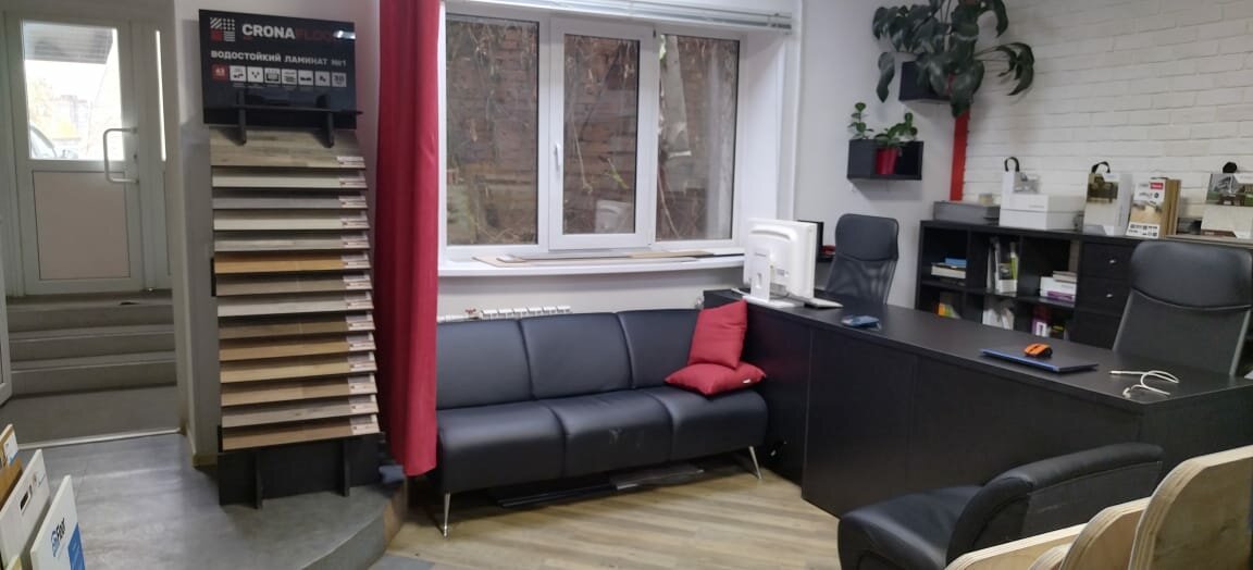Если нужны кварцвинил или другие типы напольных покрытий — значит вам точно сюда. Большой выбор, куча образцов и очень толковые менеджеры. Пожалуй самый давний, один из первых, магазинов с кварцвиниловой плиткой в городе. Второй ремонт уже с ними делаем.