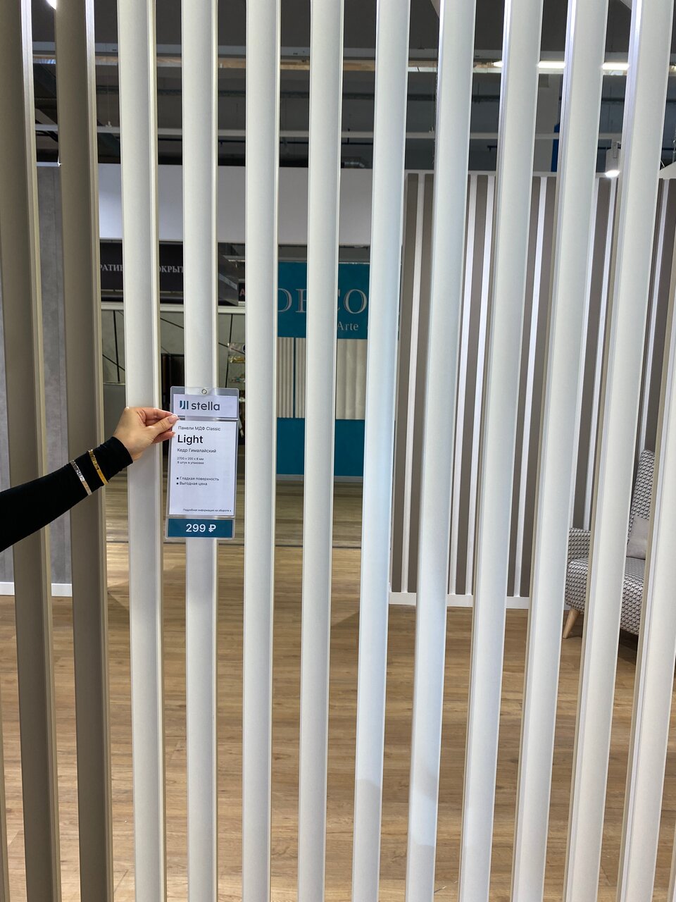 Консультант не очень заинтересована в привлечении клиента, беседовала по телефону. Продукцию можно пощупать в виде образцов и сделаны выставочные участки