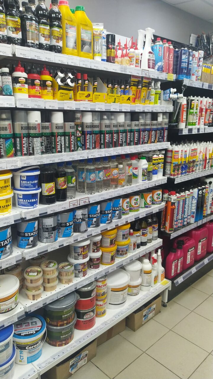 Учитывая небольшой размер магазина, всё самое необходимое для нелегального ремонта есть. Электрика, сантехника, краски-эмали, методы, инструменты и т.п. всегда есть. А самое главное грамотный консультант. Подскажет, расскажет без проблем. А если чего-то у них нет в наличии, то подскажет где найти поблизости.