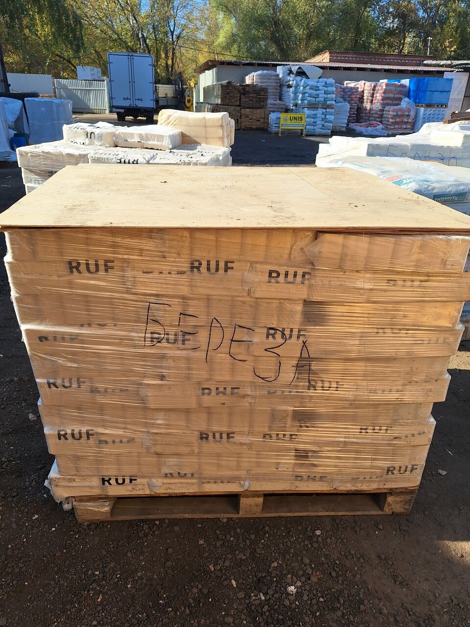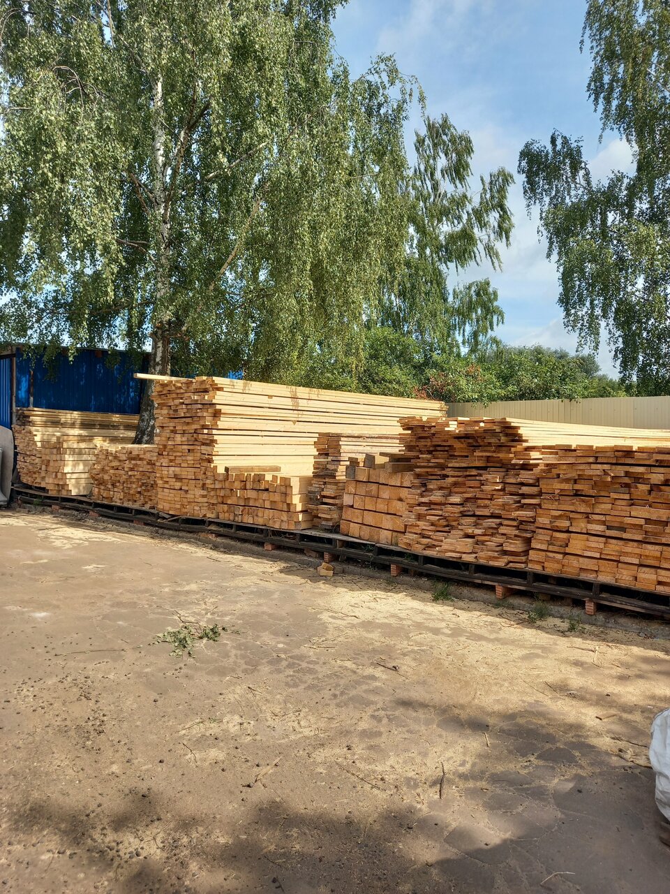 Территория грязная, особенно если после дождя, лужи, грязь. В сарае , где лежит фанера, протекает крыша, прямо на фанеру, пиломатериалы не очень хорошего качества.