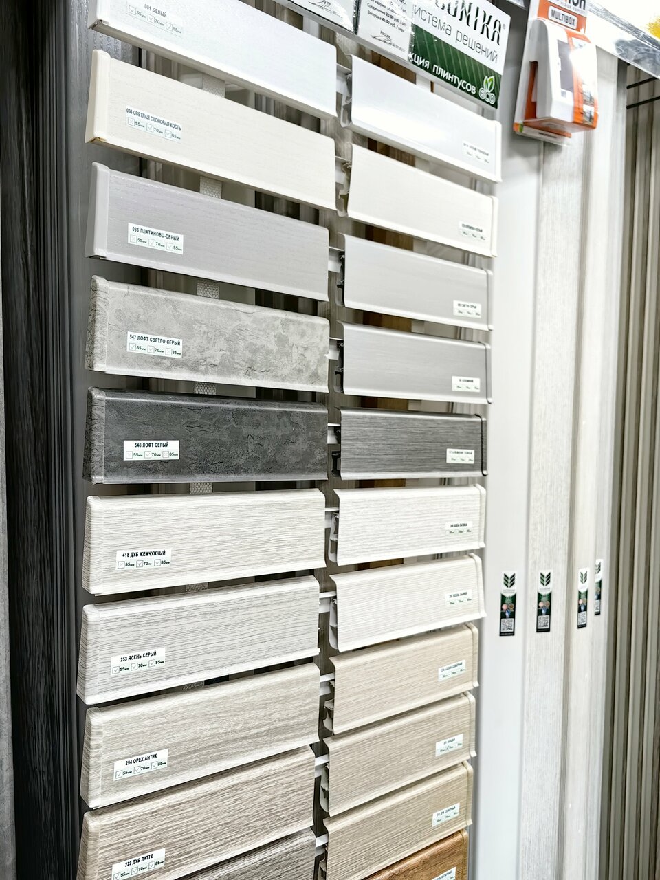 - Широкий выбор сопутствующих товаров (плинтуса и др.)