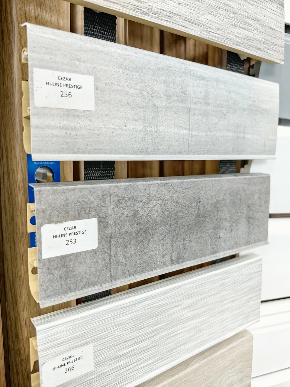 Плинтуса всех форматов:ПВХМДФДюрополимер (антивандальные, под покраску)ПолиуретанУ нас можно подобрать плинтуса под любое напольное покрытие, под любой наличник двери и даже в тон стен. ПВХ плинтуса в наличии, забрать можно сразу из магазина.