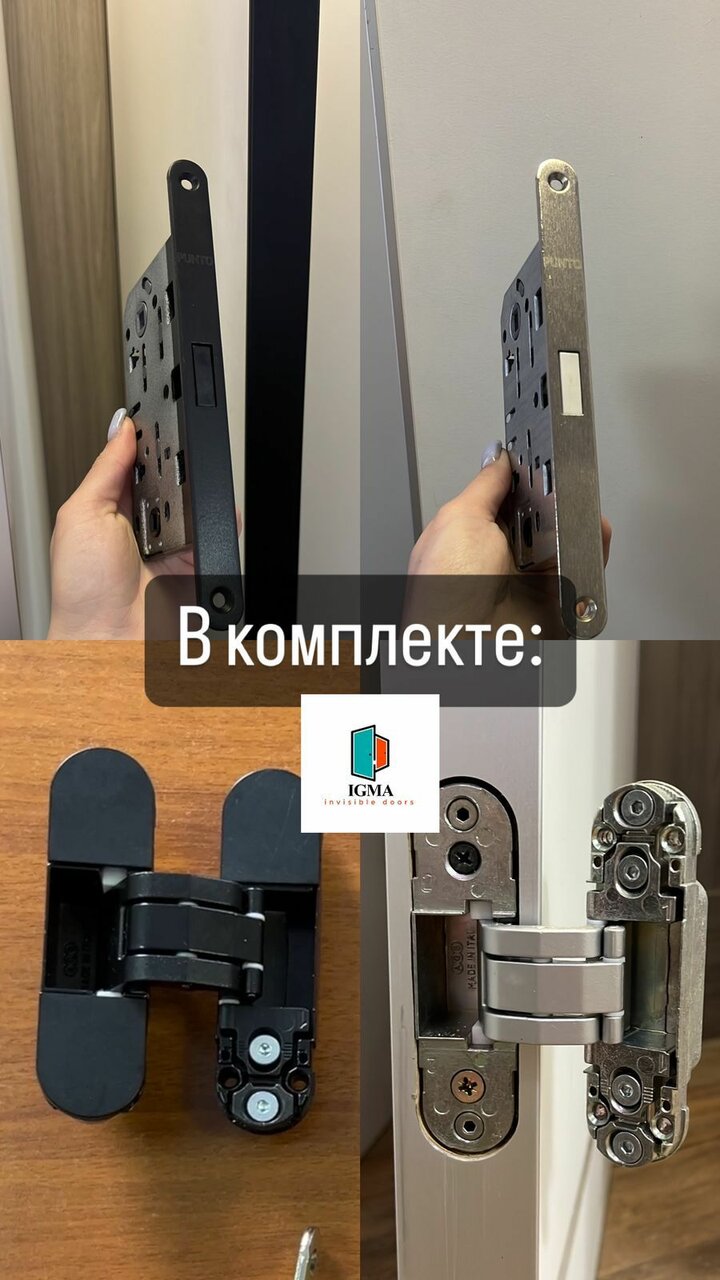 16.500 BLACK EDITION ЦЕНА ЗА КОМПЛЕКТ, с самой низкой ценой в России и СНГ за лучшее качество:- Скрытая дверь стандартного размера в алюминиевой черной кромке с 4-х сторон - Скрытый короб - 2 скрытые петли- Магнитный замок