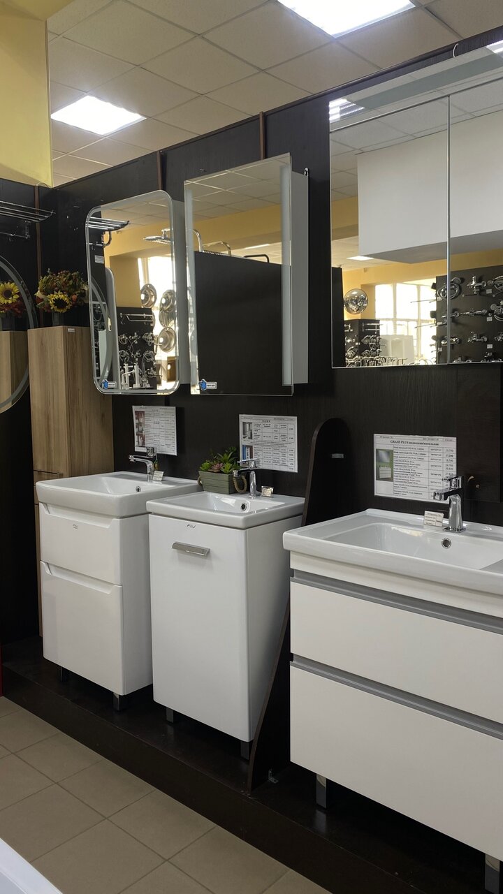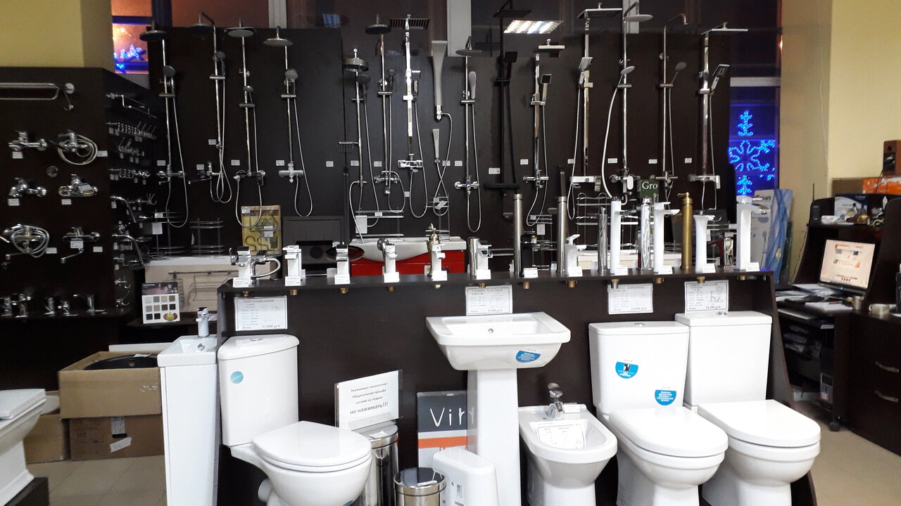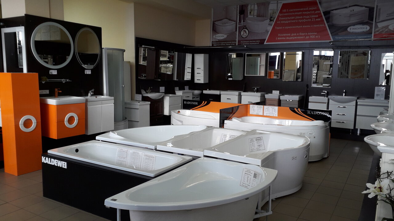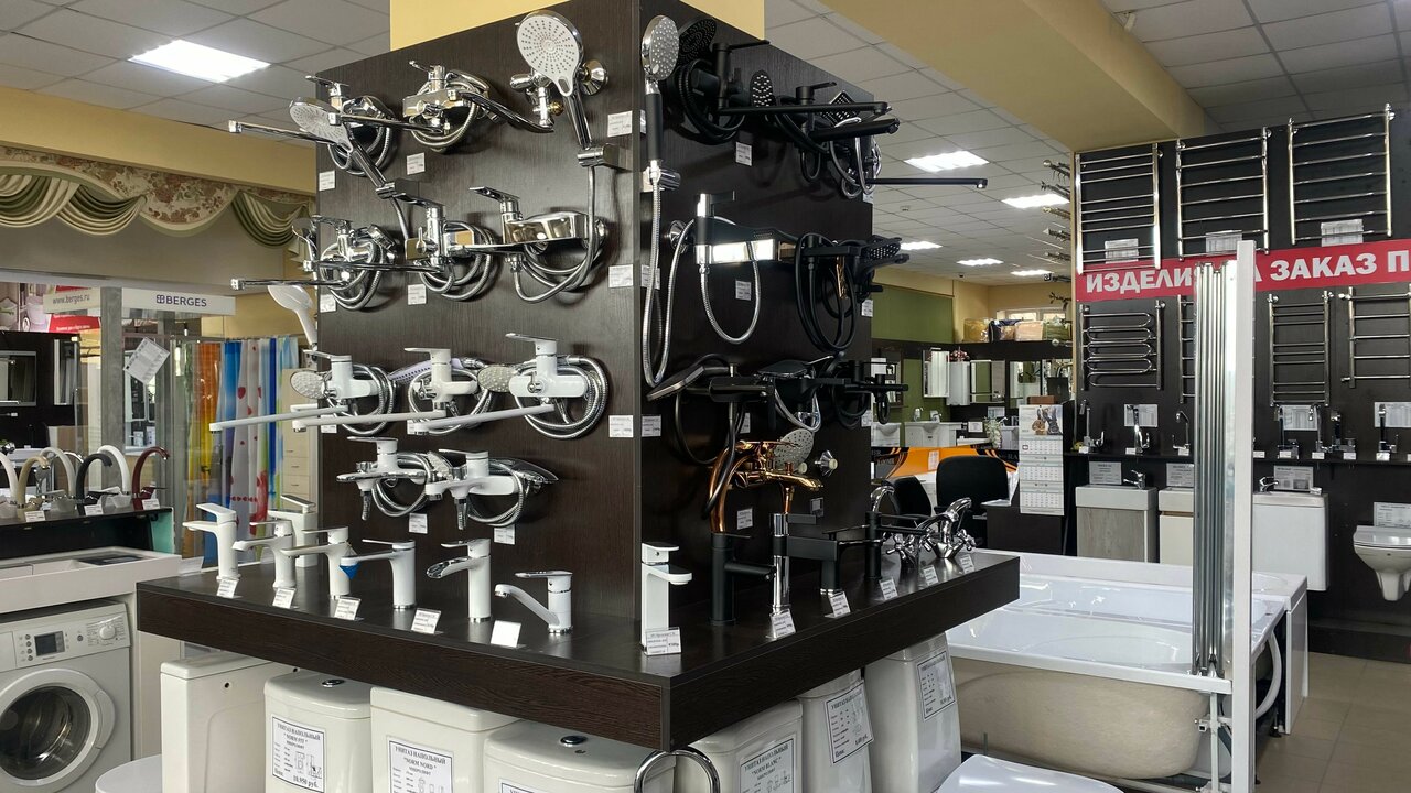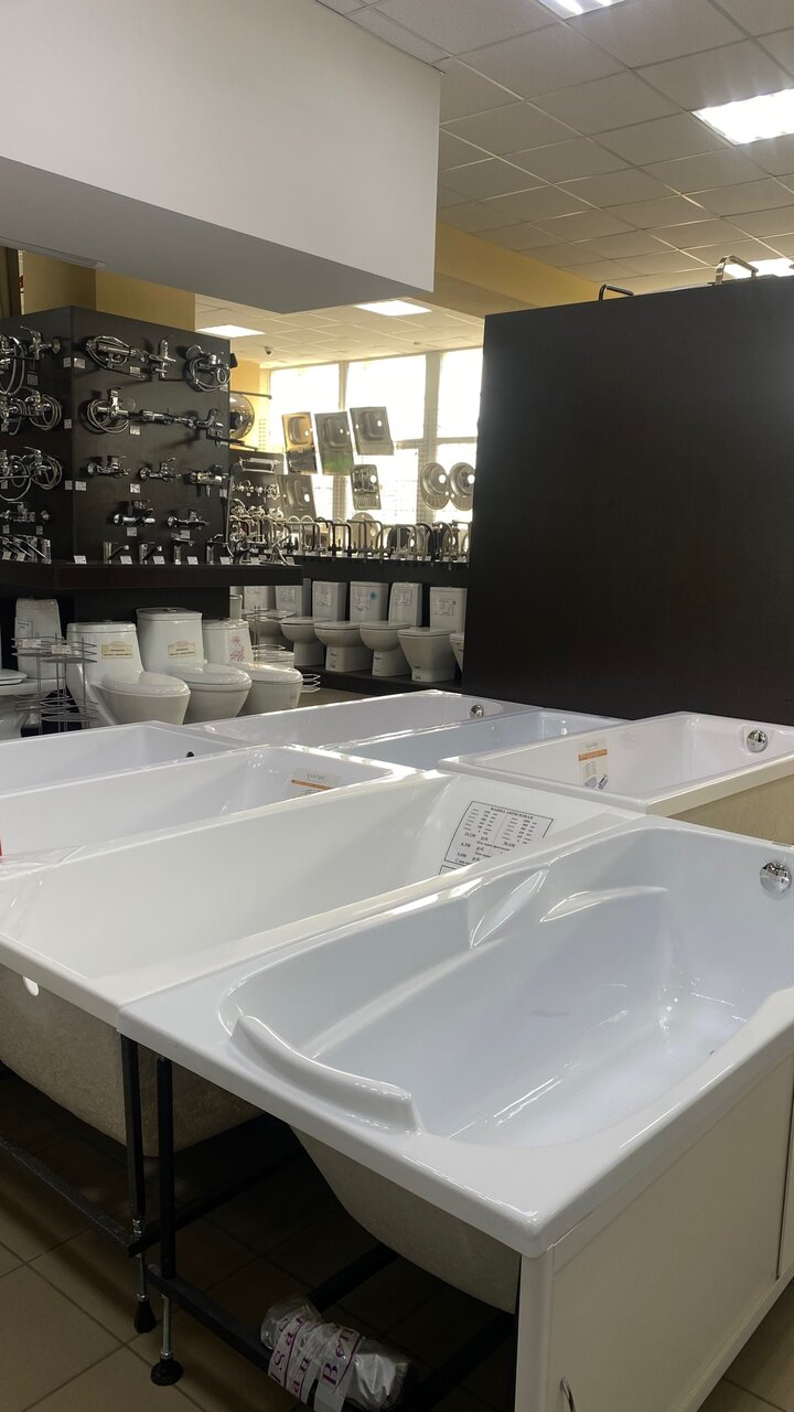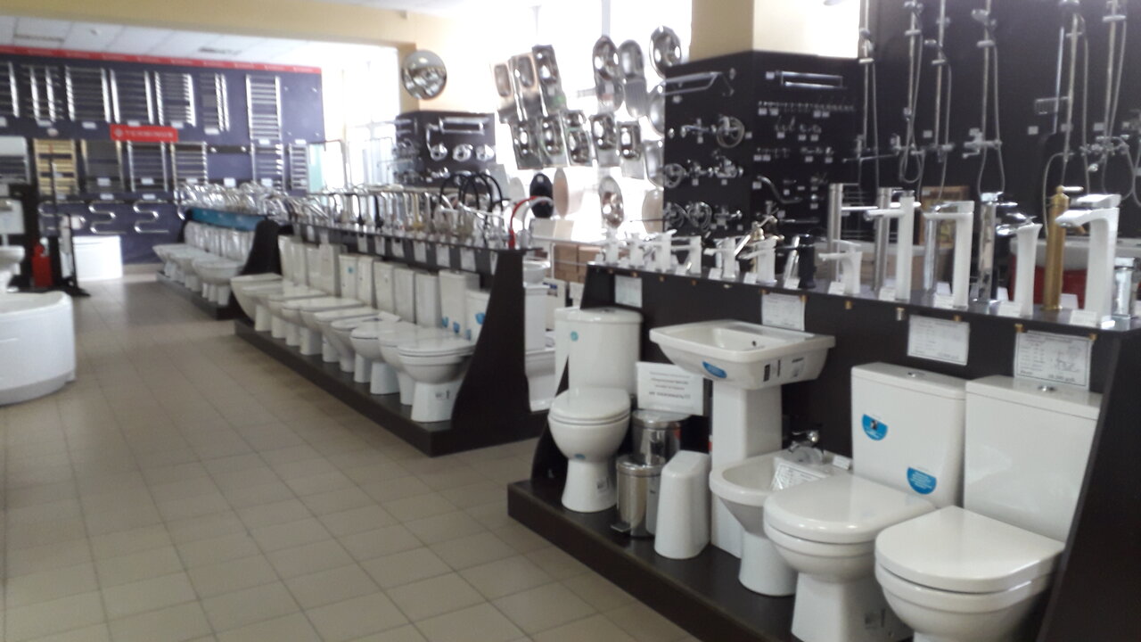 Очень крутой магазин инженерной и интерьерной сантехники, плитки, керамогранита и ламинат. Как мне показалось здесь можно решить любые задачи касающиеся ремонта санузла и не только