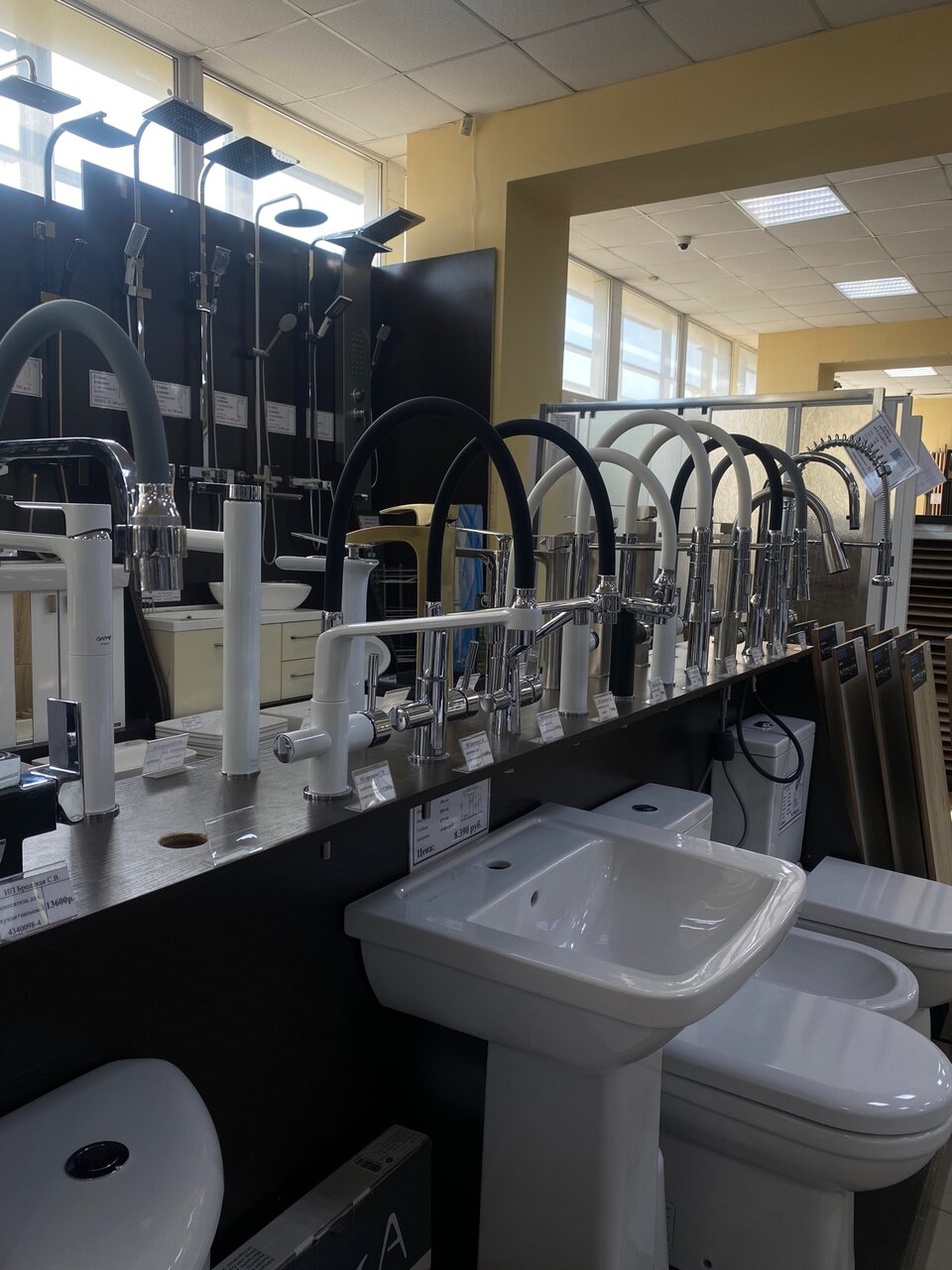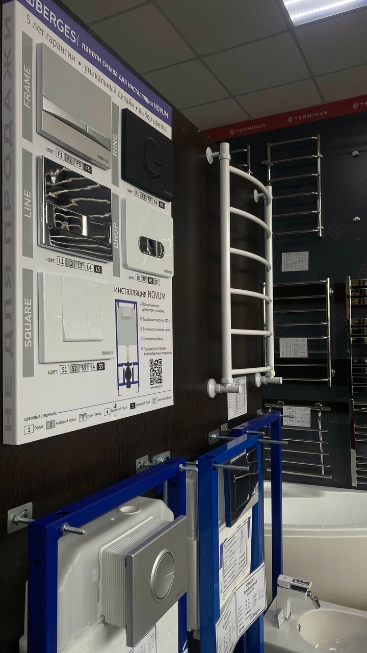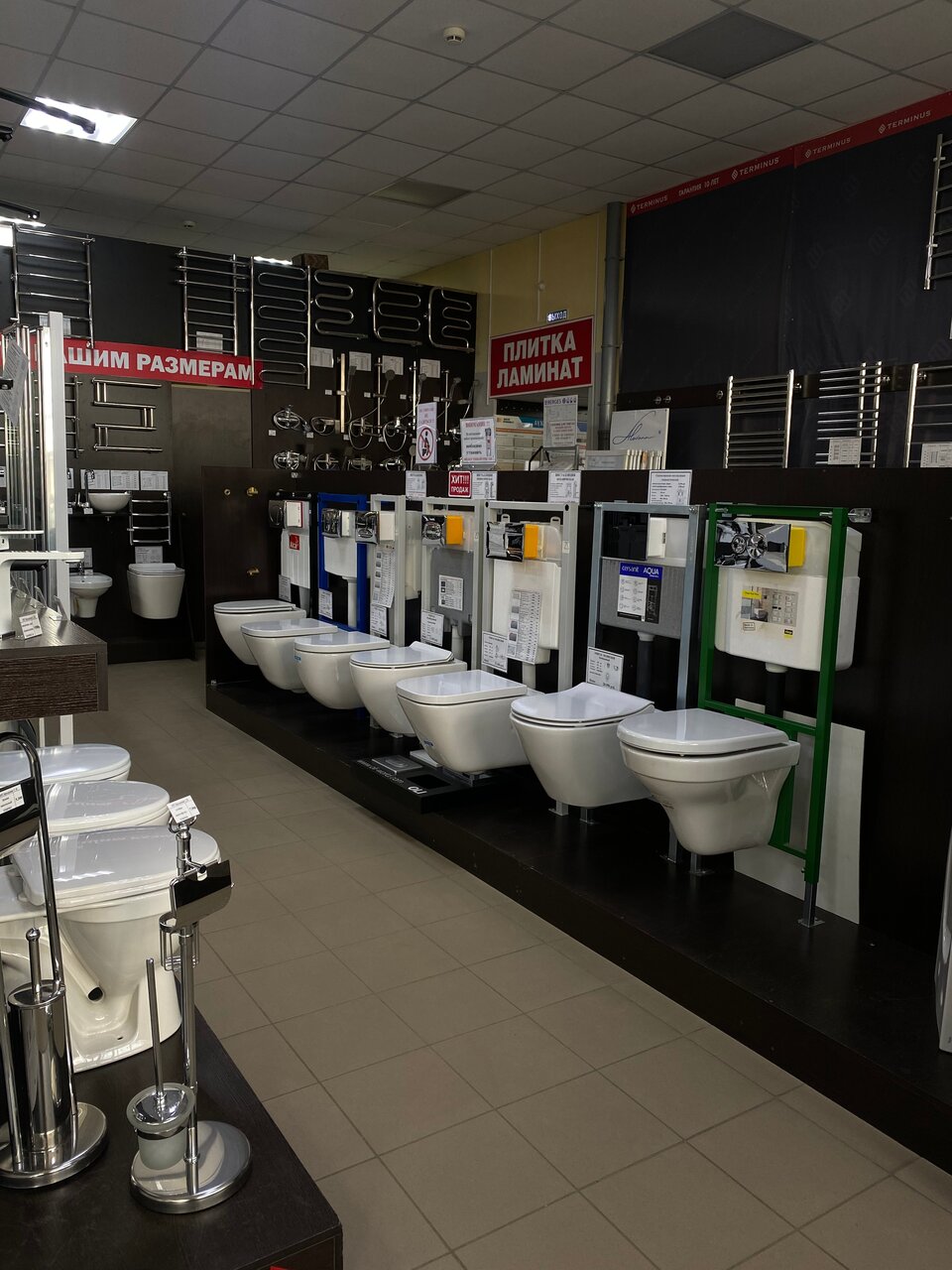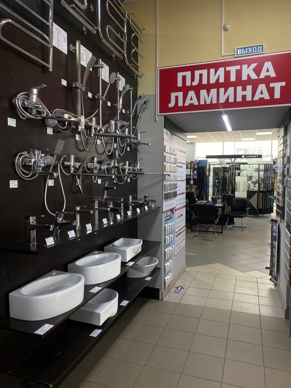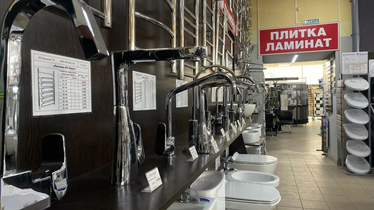Очень крутой магазин инженерной и интерьерной сантехники, плитки, керамогранита и ламинат. Как мне показалось здесь можно решить любые задачи касающиеся ремонта санузла и не только