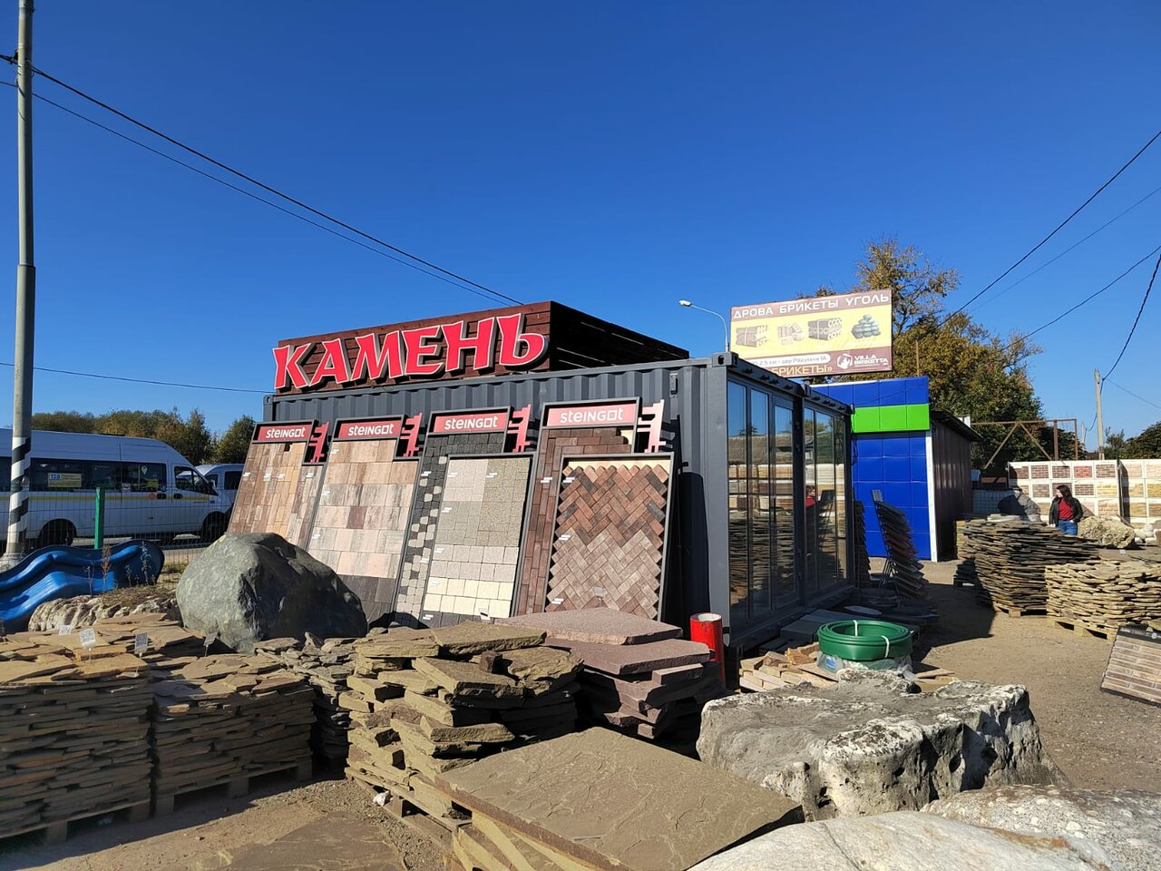 Строительный магазин, тротуарная плитка, изделия из камня