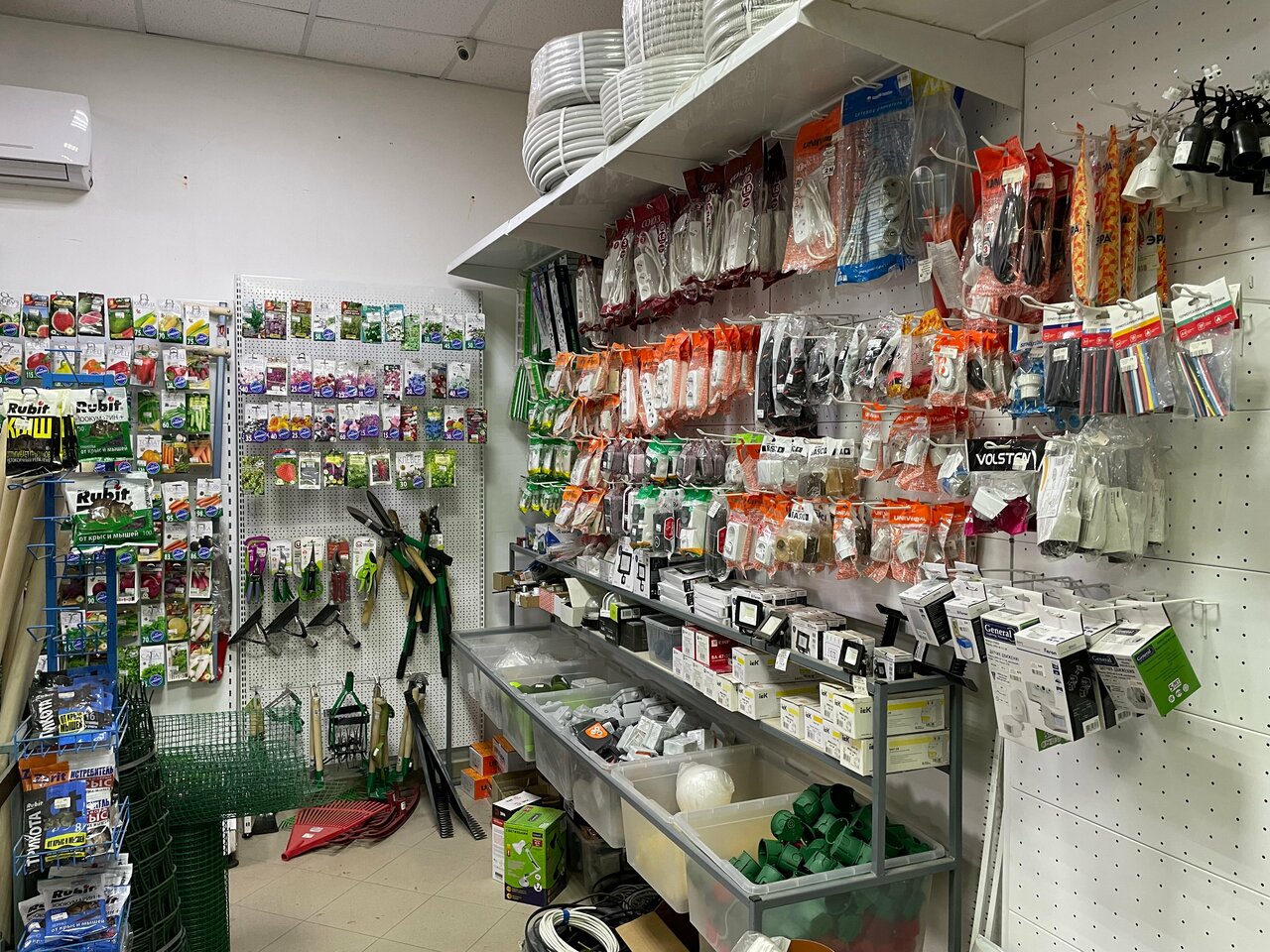 - Хороший ассортимент сантехники и садового оборудования