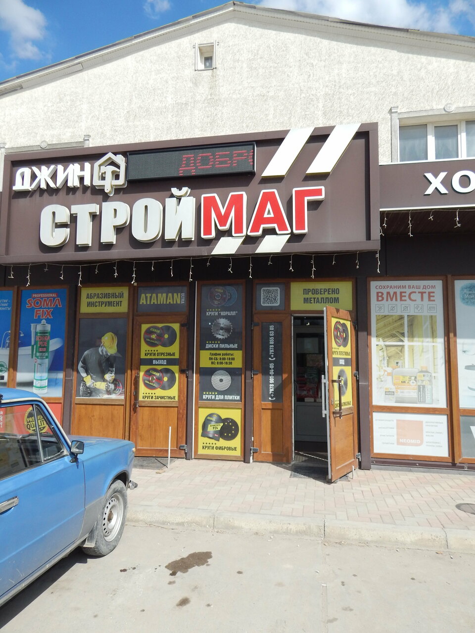 Строительный магазин, магазин продуктов, магазин хозтоваров и бытовой химии