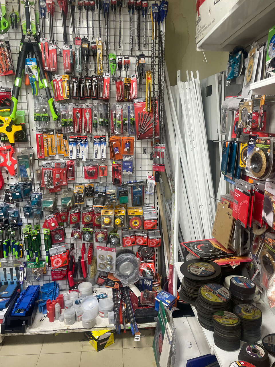 Если что-то нужно срочно и не охота ехать в крупный строительный гипермаркет, иногда выручает, хотя на некоторые товары цены очень кусаются. Очень жаль, что нет больших мешков с цементом, песком или керамзитом, приходится ездить на Покровский строительный рынок, а так если сломалось сверло, диски на болгарку всегда расходники имеются в наличии, как и шурупы и винты разного калибра. По электрике тоже товар ходовой имеется. Так что если что по мелочи срочно нужно, там всегда есть!
