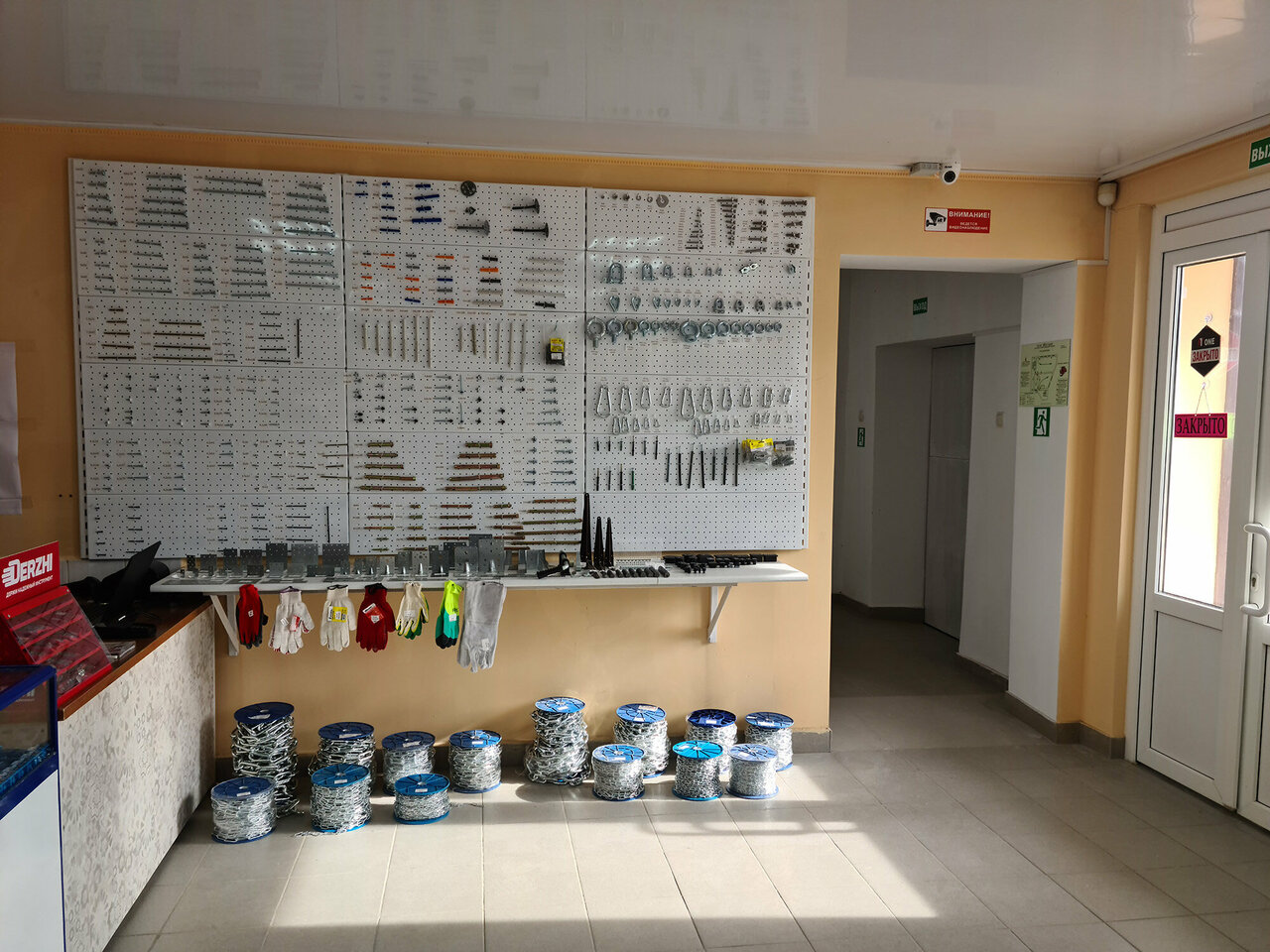 Большой выбор саморезов, крепежа и строительного инструмента. На втором этаже можно приобрести электрические комплектующие для любых строительных обьектов.