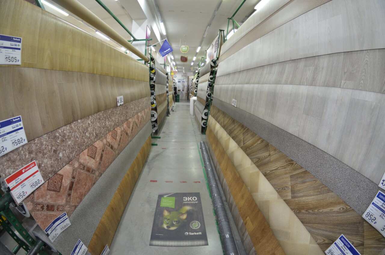 Не строительный магазин, а скорее крытый рынок. Отдельные предприниматели. Навалено прямо со в хода в каждом закутке и под лестницами. О пожарной безопасности речь не идёт. Ассортимент напольных покрытий, дверей и строительной мелочевки