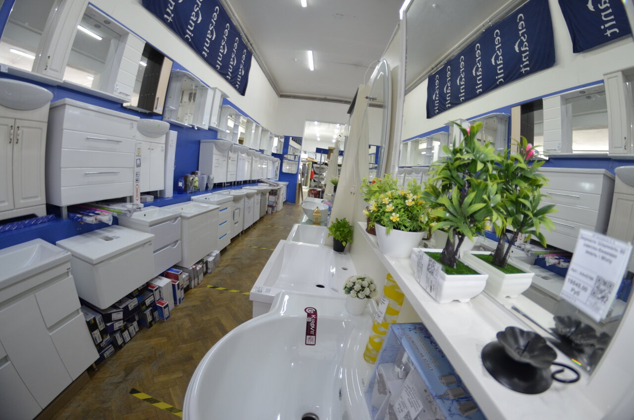 - Большой выбор товаров (от мелочей до сантехники и керамогранита)