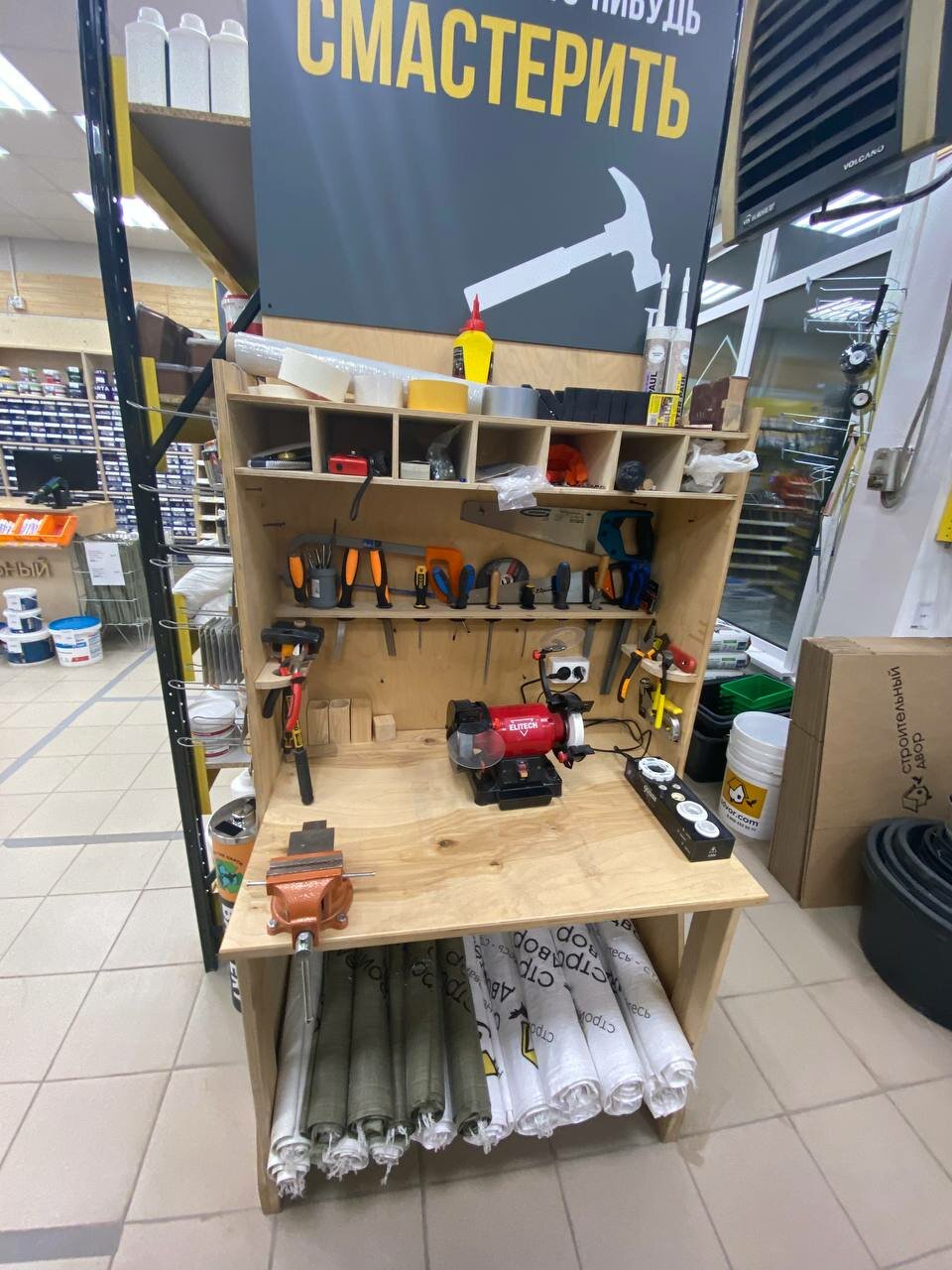 Отзывчивый персонал — помогли починить скрип колес на коляске за просто так. Приходим с ребенком и всегда получаем бонусом положительные эмоции, юмор и всегда полезные советы. Также установлен верстак с большим количеством инструментов — можно прийти и что-то починить бесплатно. + Пункт сбора батареек для утилизации! Из крупных покупок — покупала тут по совету консультанта смеситель из нержавеющей стали, очень довольна, добротный комплект, дешевле, чем на маркетплейсах, не маркий. Благодарю!