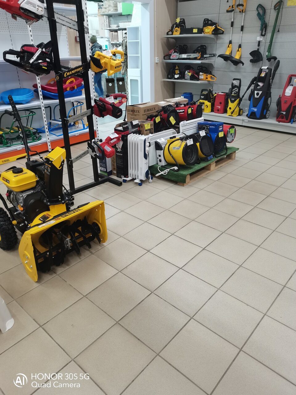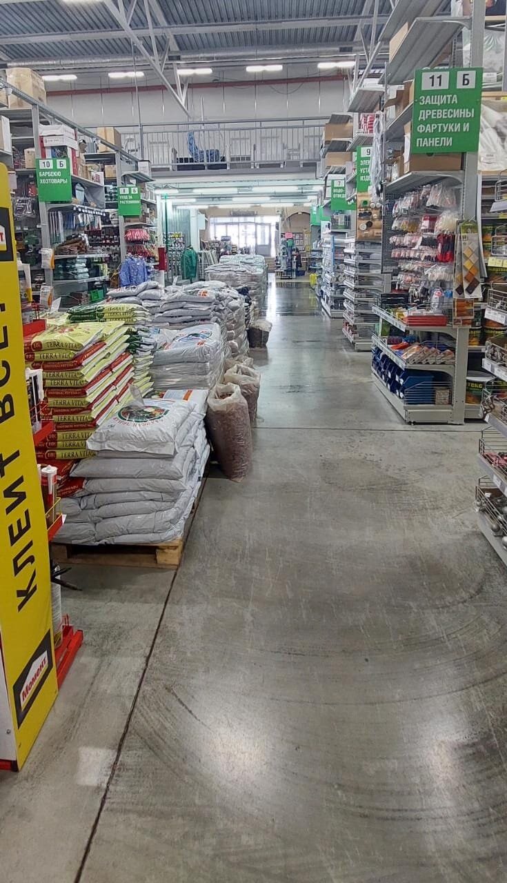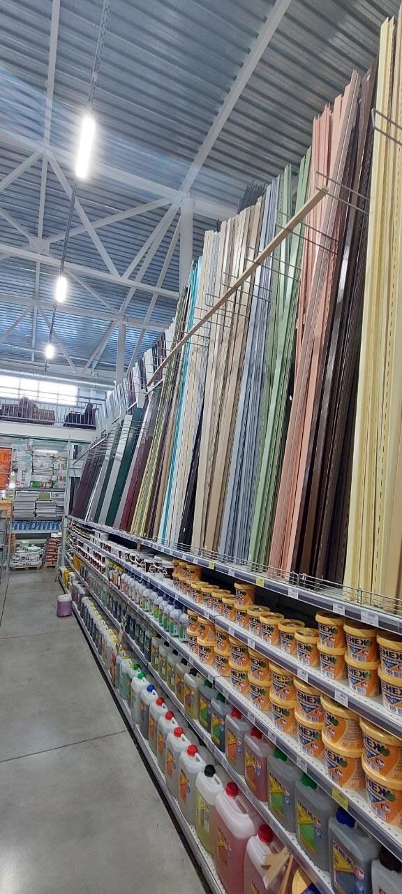 Магазин с хорошей подъездной дорогой, с достаточными местами для парковки, с довольно богатым ассортиментом разного товара, найти можно практически всё) На втором этаже представлены и мебель для сада, и обои, и детские товары, и частично шторы. Ну, а товаров для строительства и стройки лучше увидеть своими глазами) и лучше сразу дисконтную карту приобрести, хоть и незначительный возвращается кэшбэк, но, приятно)
