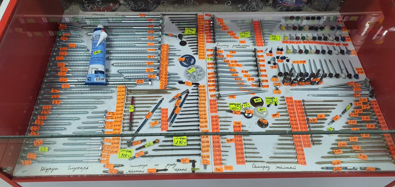 Муж постоянно покупает тут саморезы, гвозди и тд! Очень большой выбор! Присутствуют сопутствующие товары для стройки и ремонта, инструмент! Нам нравится. Оба магазина удобно расположены. Продавцы хорошо ориентируются в товарах.