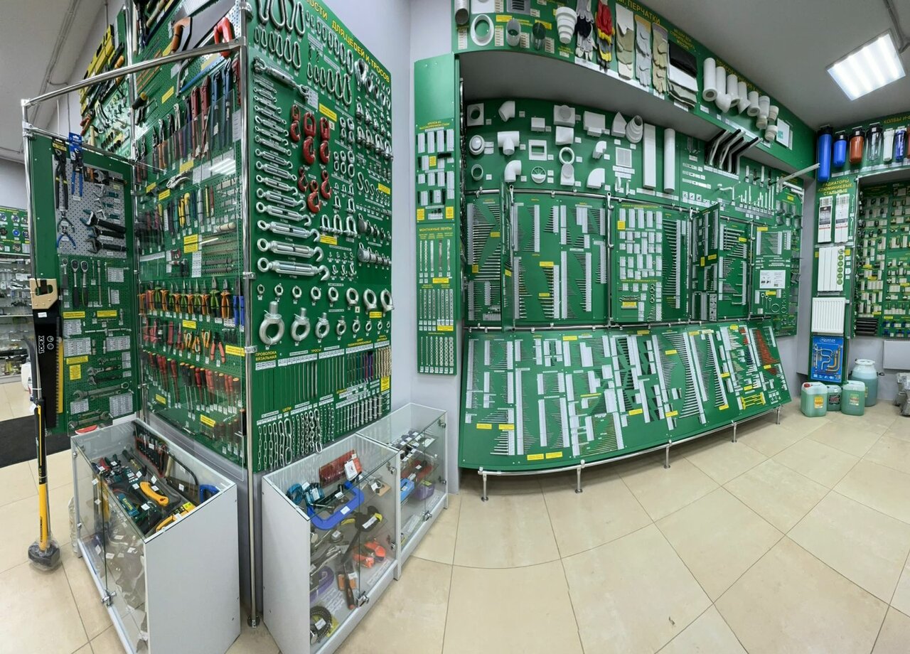 - Большой выбор крепежа, сантехники, электрики