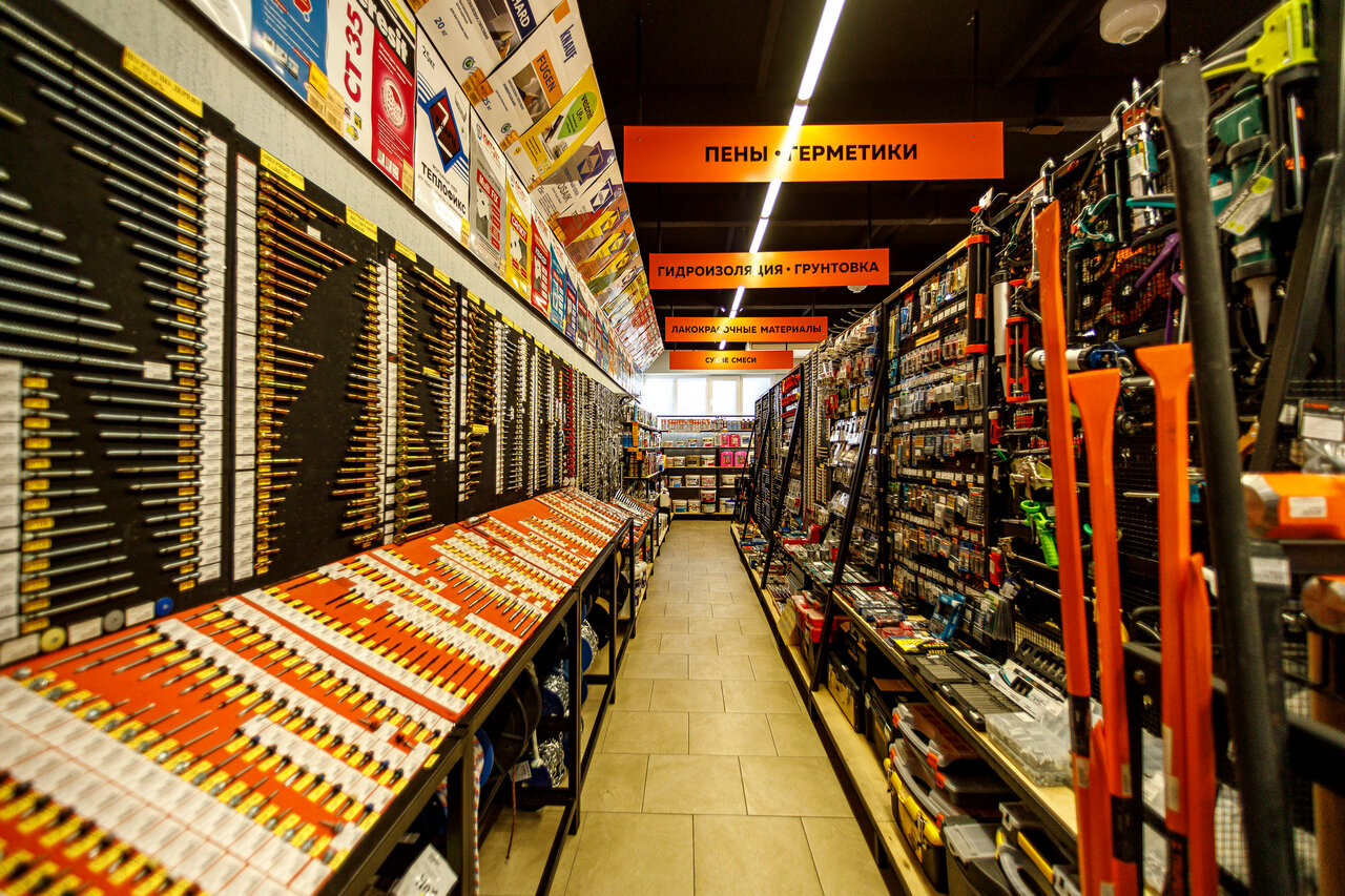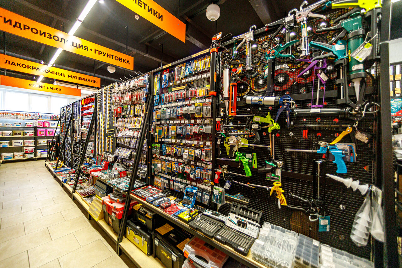 Место, где можно найти всё, от гвоздя до кровли. Очень большой выбор инструментов и материалов для отделки. Квалифицированый персонал встречает советом и помогает в сложном выборе материала. Консультируют и помогают сделать покупку! Ожидание комплектации покупки у склада скрашивает горячий кофе из кофемашины.