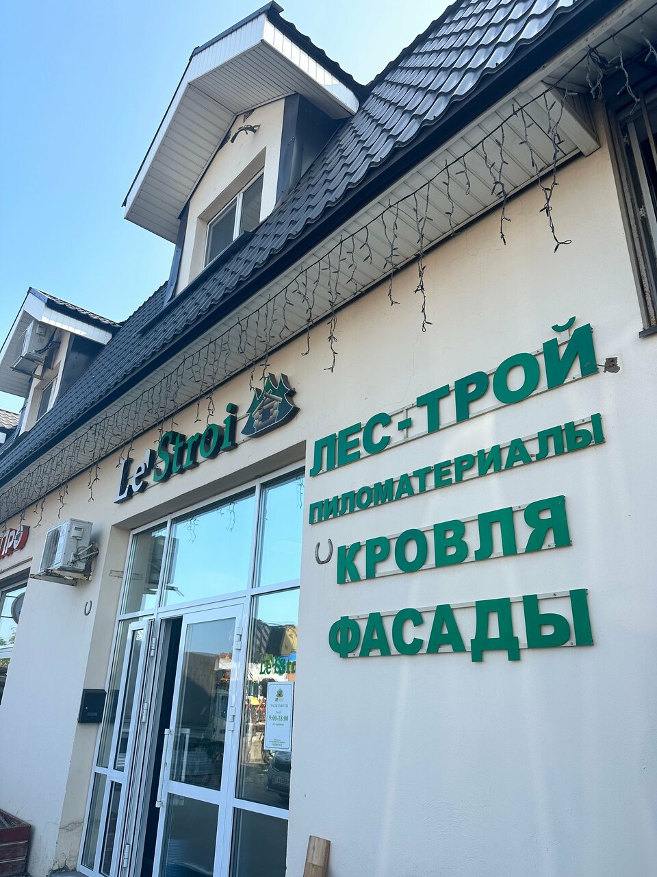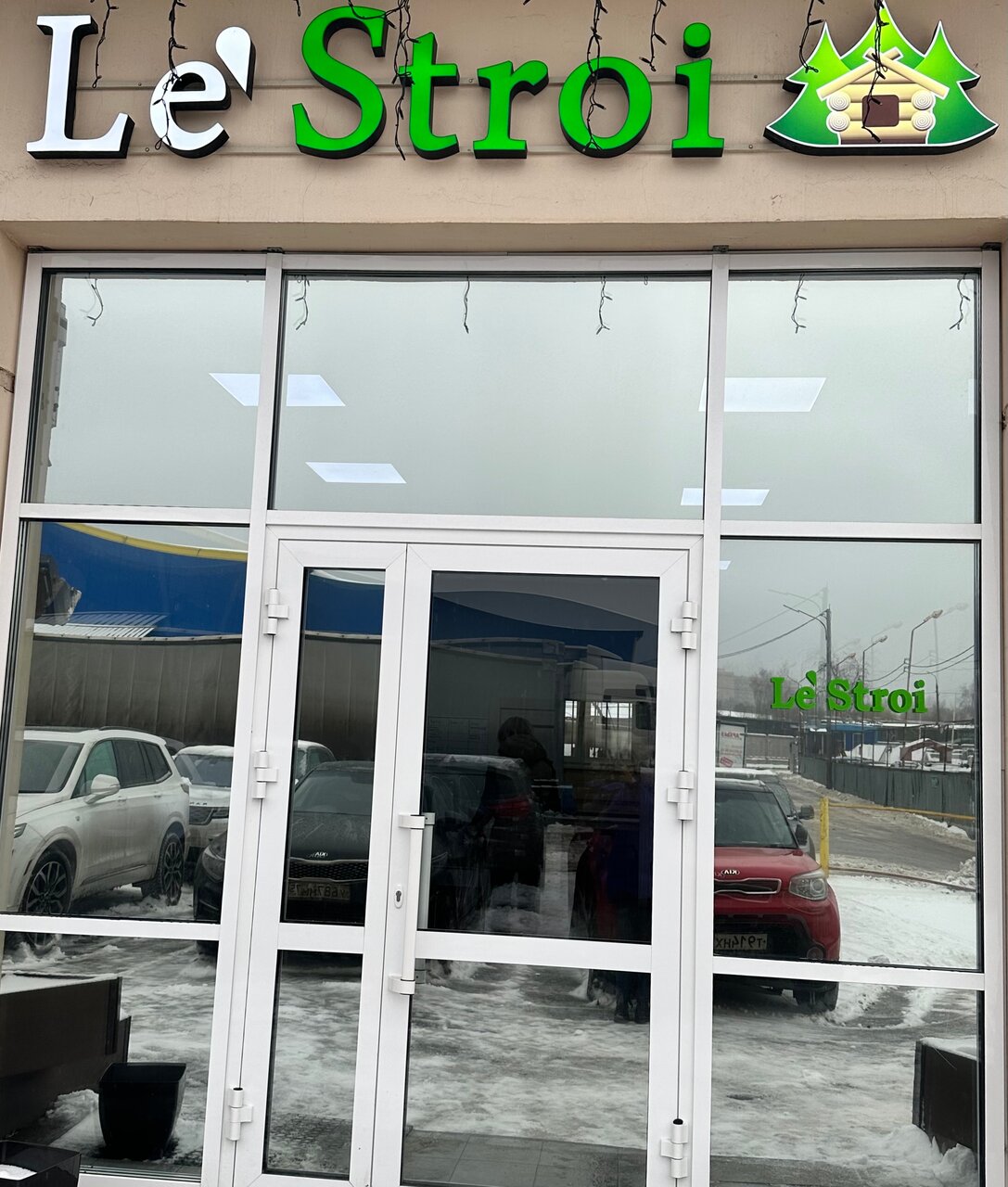 Лес-Трой Центральная улица, 6Б, стр. 1, стеклянные двери, вывеска Le'Stroi, этаж 1 Гольево