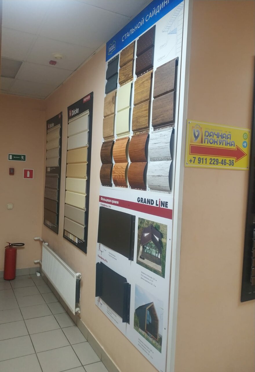 В магазине большой выбор материалов для облицовки и кровли. Вежливые менеджеры готовы помочь в выборе материала. Рекомендую.