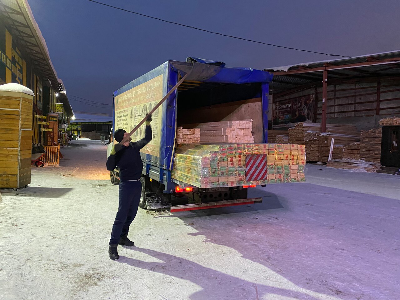 Покупал через интернет, но сам приехал за своей покупкой. Загрузили блок-хаус, сотрудники помогали. За то, что приехал сам, мне вручили ещё и карту постоянного клиента.