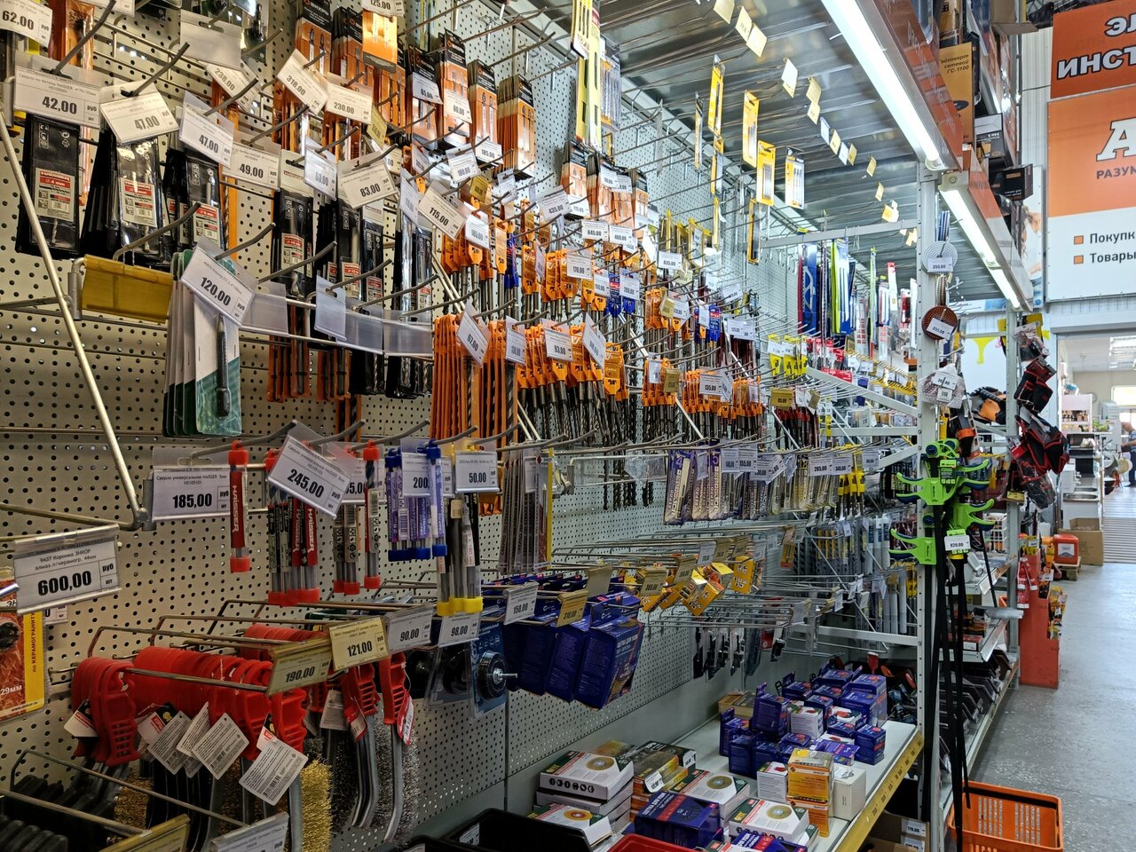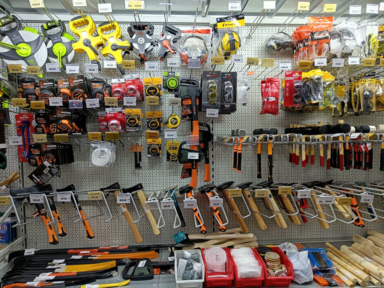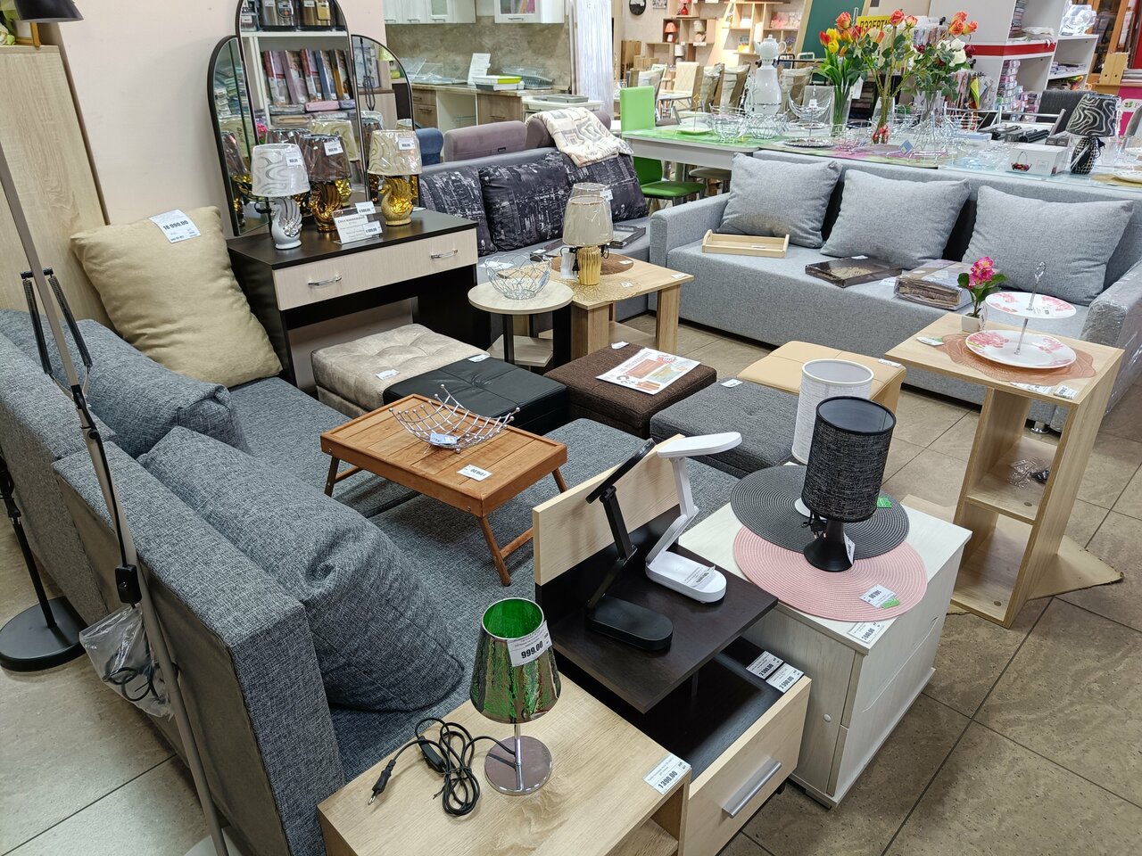 - Отделы для разных категорий товаров (мебель, инструменты, сантехника и т. д.).