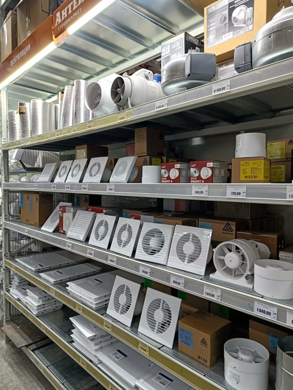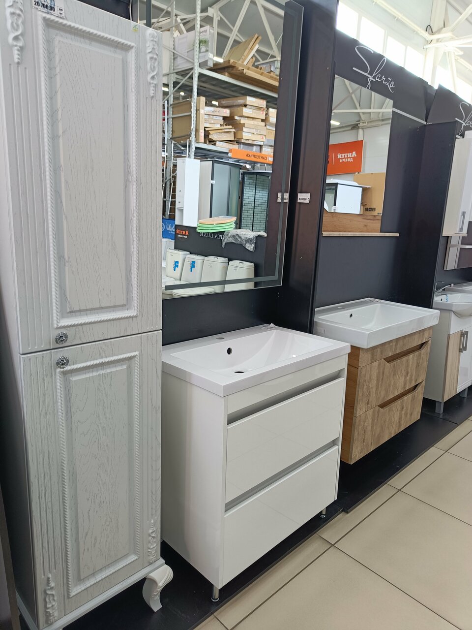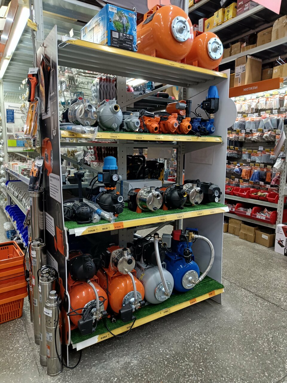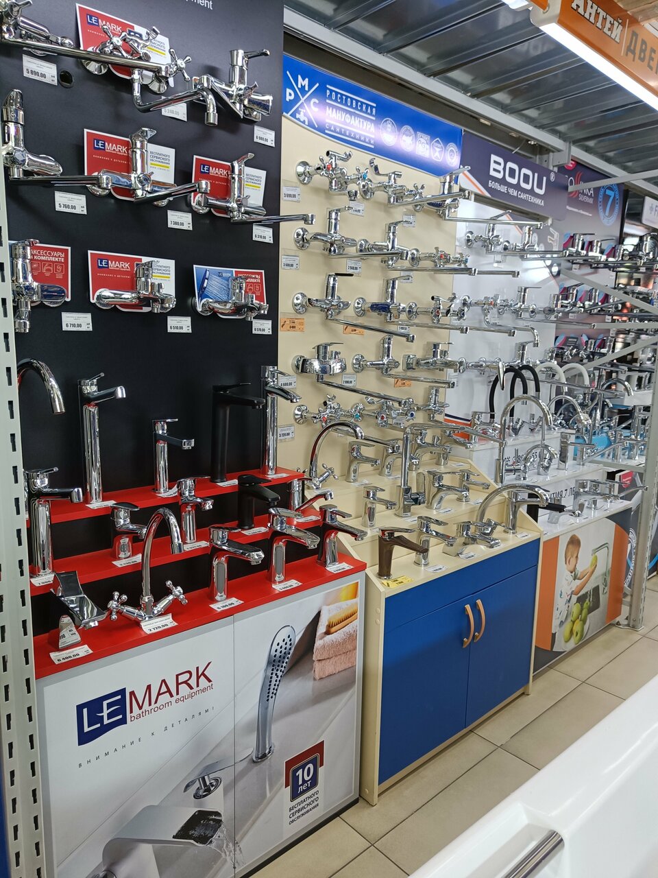 - Отделы для разных категорий товаров (мебель, инструменты, сантехника и т. д.).
