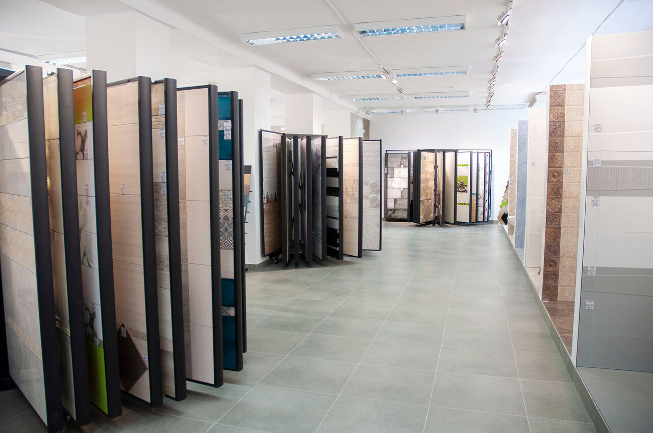 - Большой ассортимент плитки и керамогранита