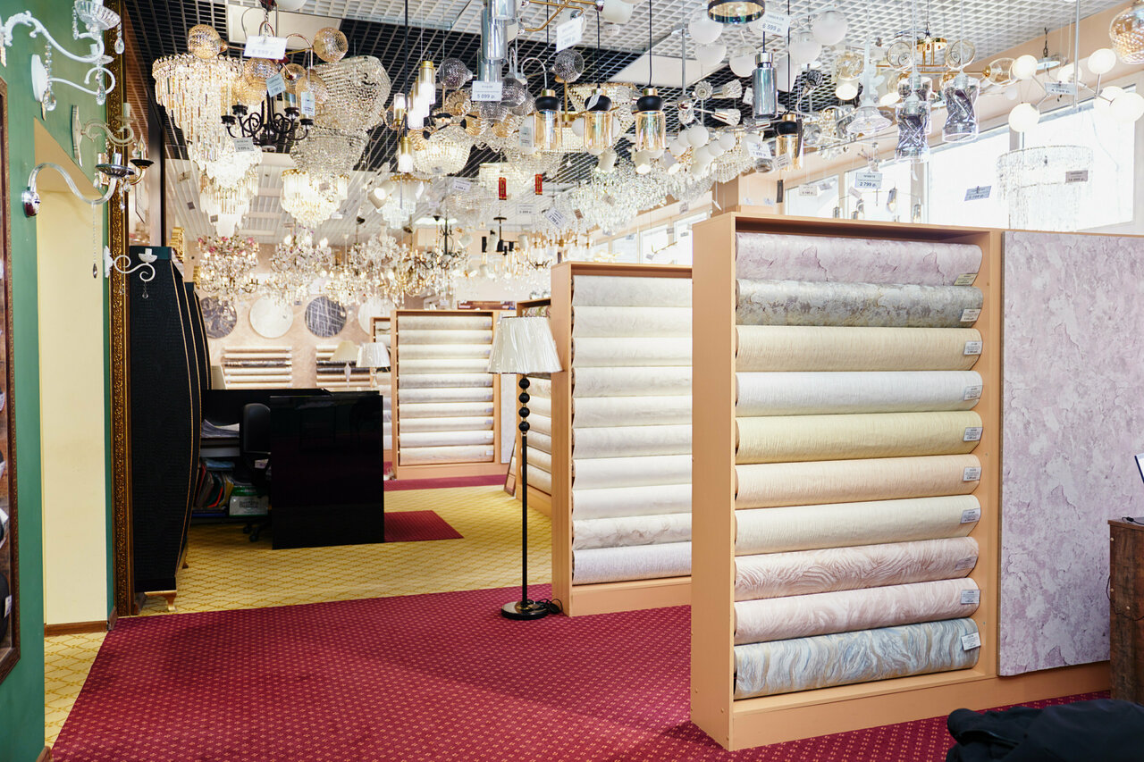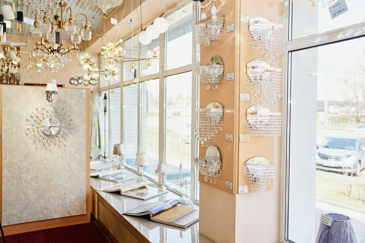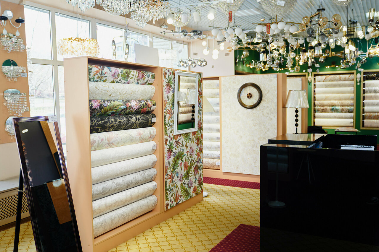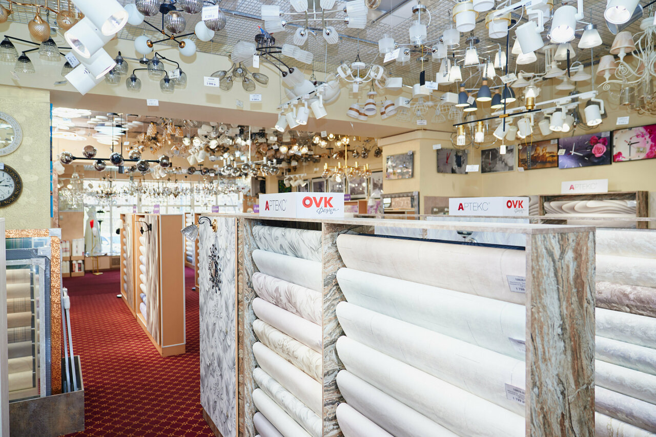 - Большой ассортимент (обои, люстры, светильники, зеркала, шторы); Скидки и система лояльности; Удобное расположение товара (не перегружено); Приятная атмосфера после реконструкции.; Вежливый и приветливый персонал