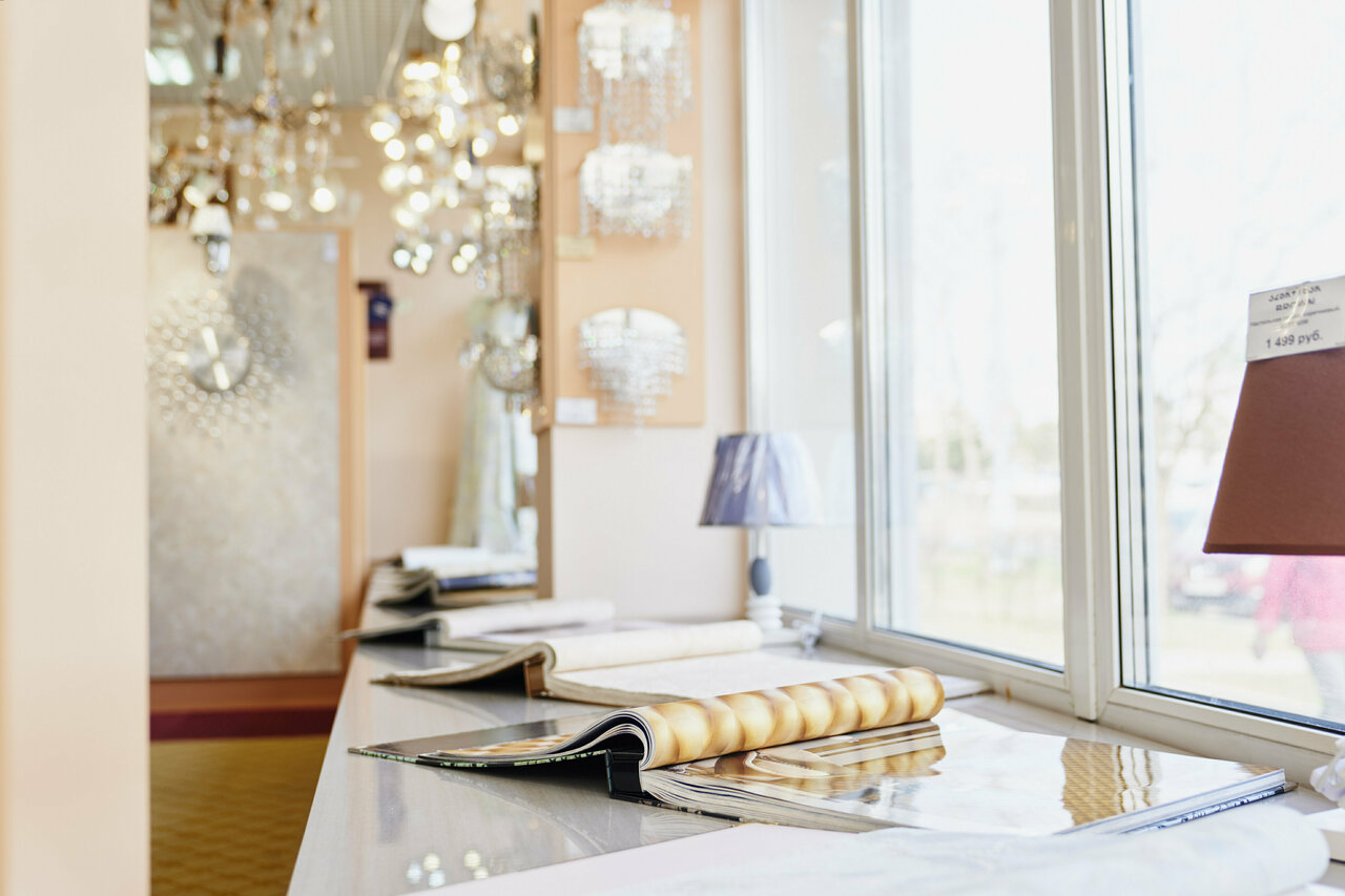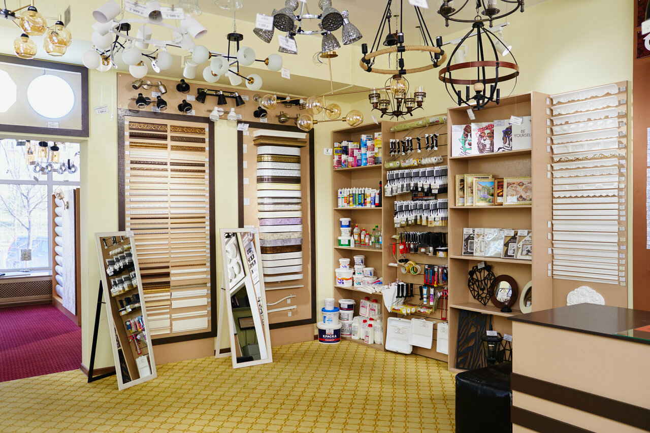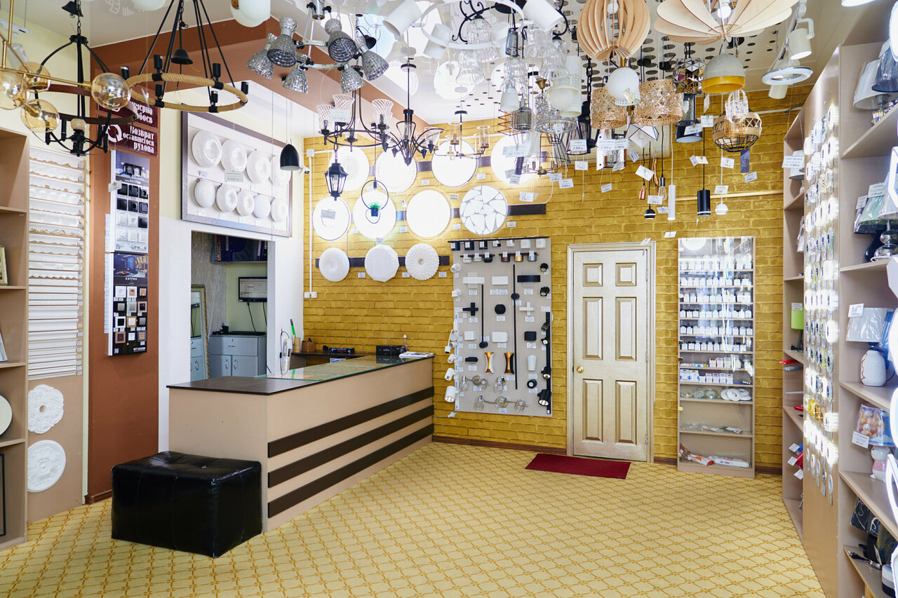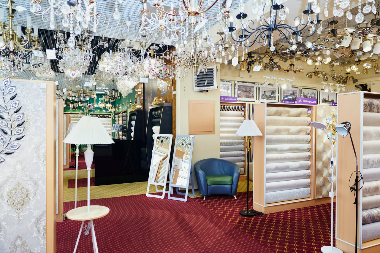 - Большой ассортимент (обои, люстры, светильники, зеркала, шторы); Скидки и система лояльности; Удобное расположение товара (не перегружено); Приятная атмосфера после реконструкции.; Вежливый и приветливый персонал