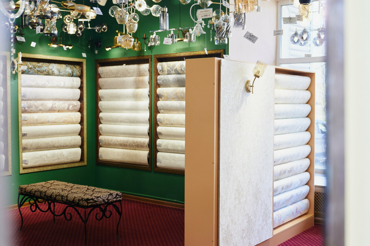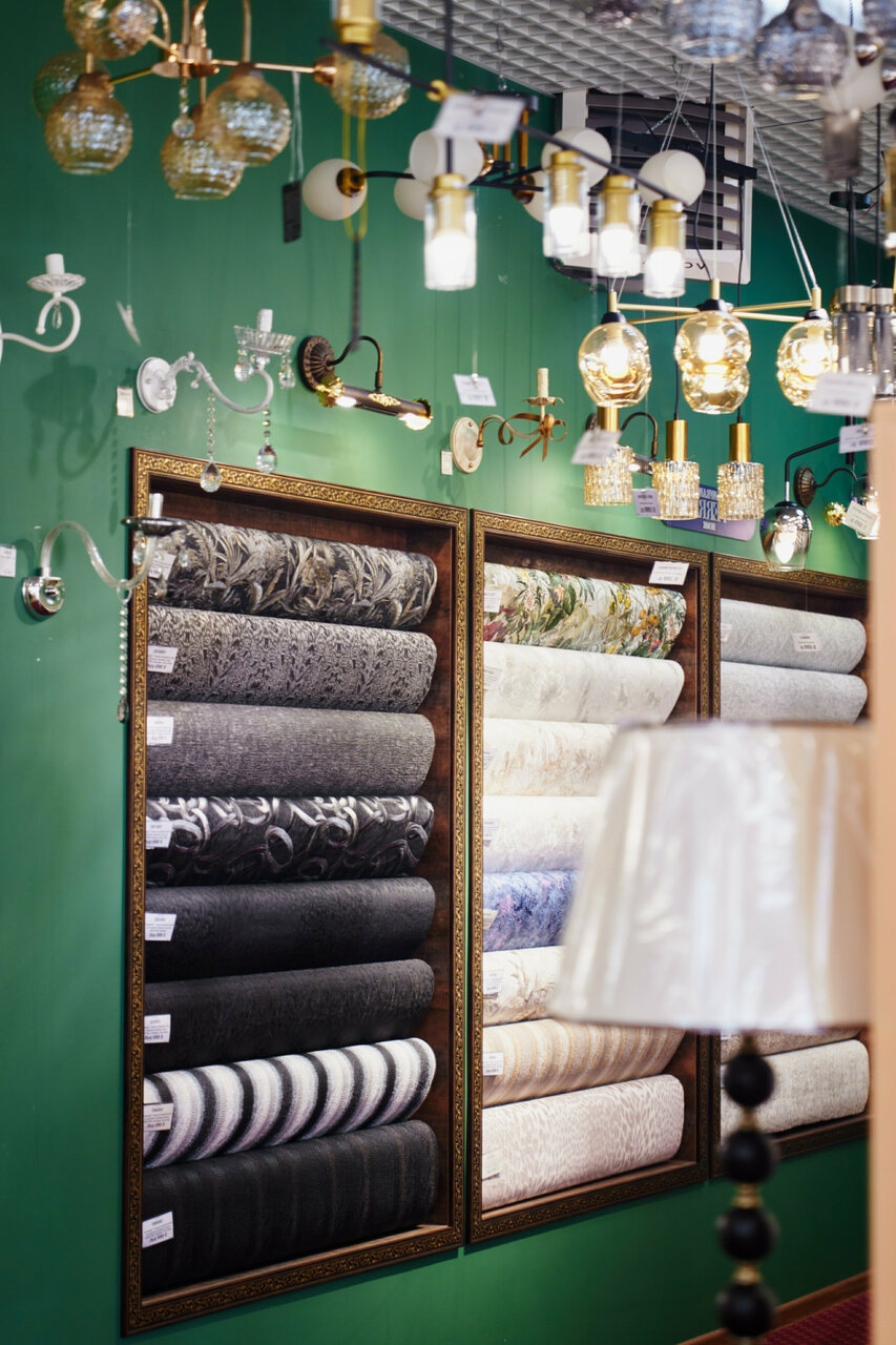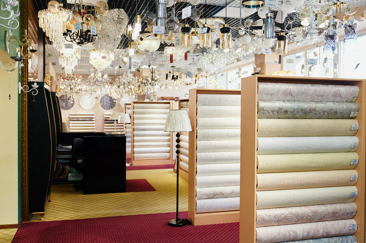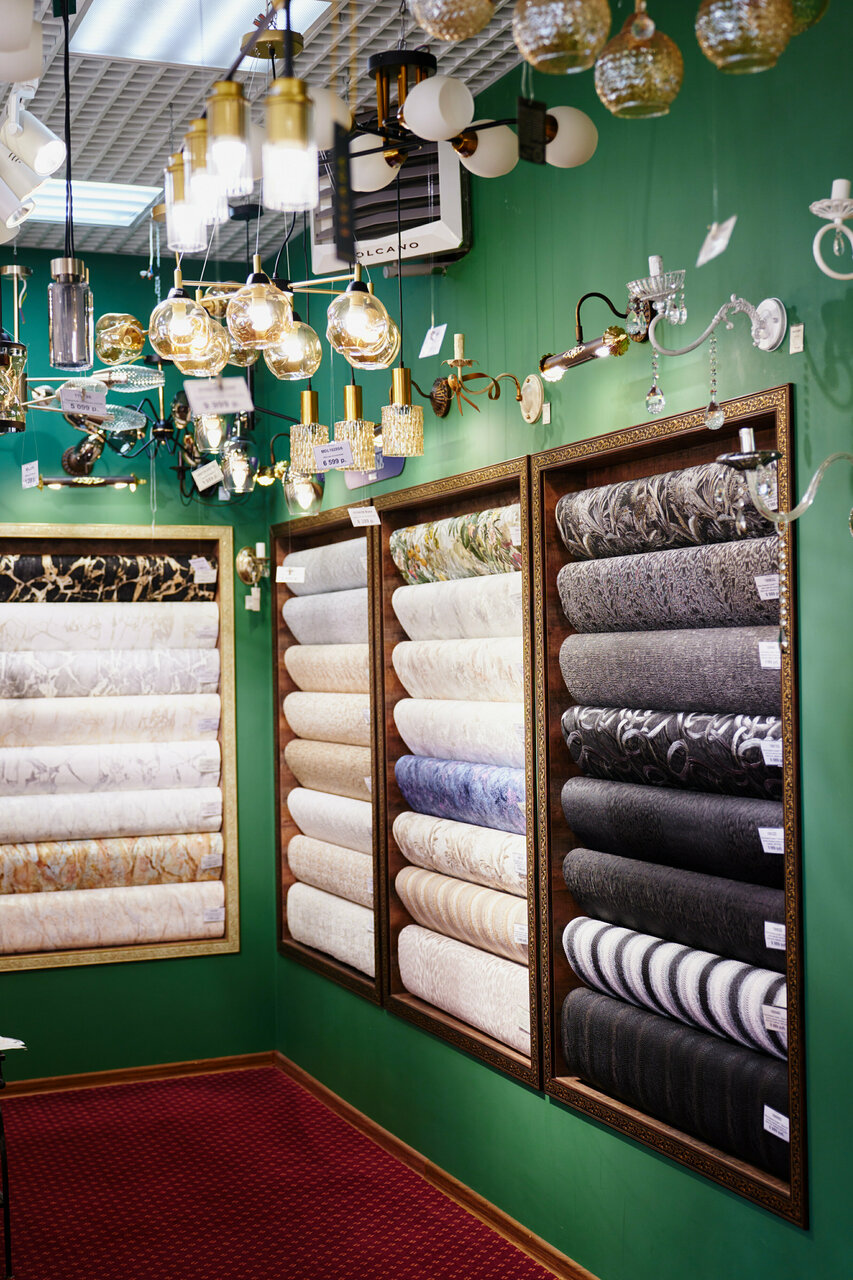 Магазин обоев и освещения, грамотные консультанты помогут определиться с выбором, можно заказать обои и люстры под заказ