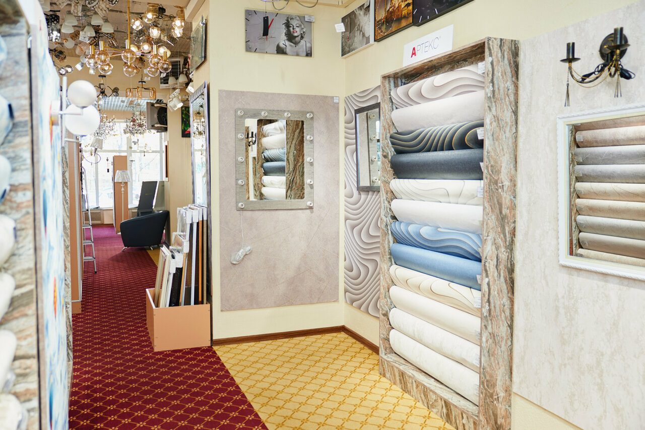 Любимый магазин.Иногда захожу просто как в музей. Выбор обоев огромен и многогранен. Дорогие,очень дорогие,средней ценовой категории. Люстры,светильники,зеркала,часы,рулонные шторы.Всего не перечислить.И персонал,который всегда рад и поможет любому,кто к ним пришёл.