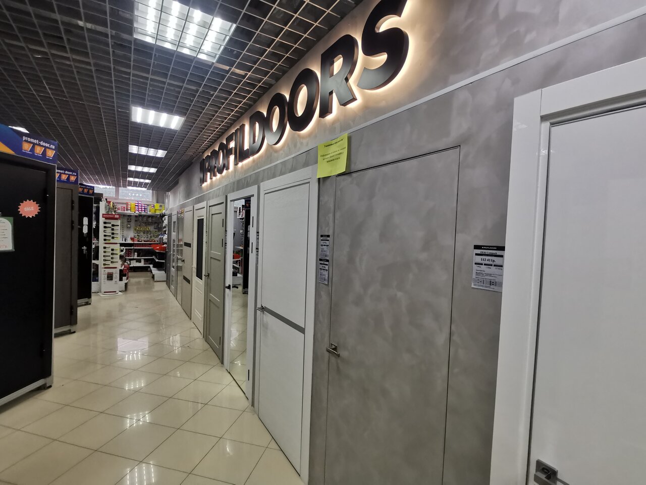 - Хороший выбор обоев, межкомнатных дверей