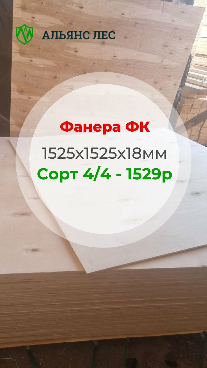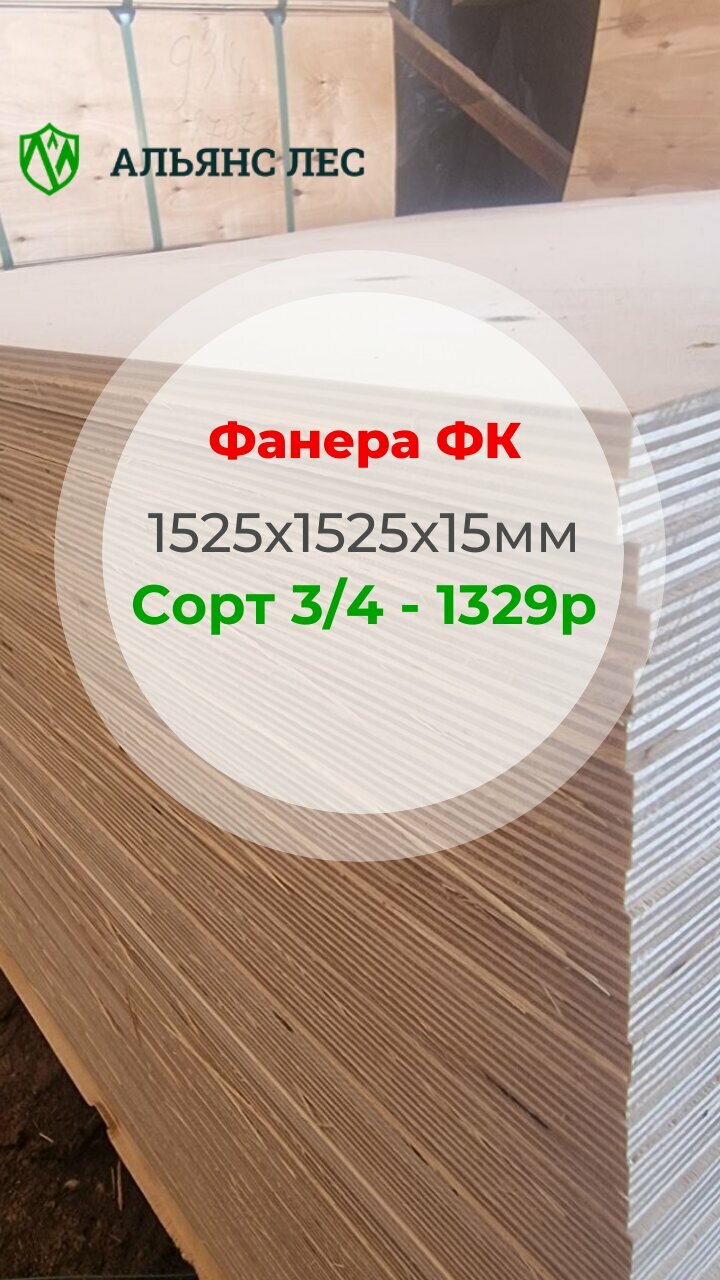 - Фанера шлифованная ФК II/IV 4х1525х1525 420₽